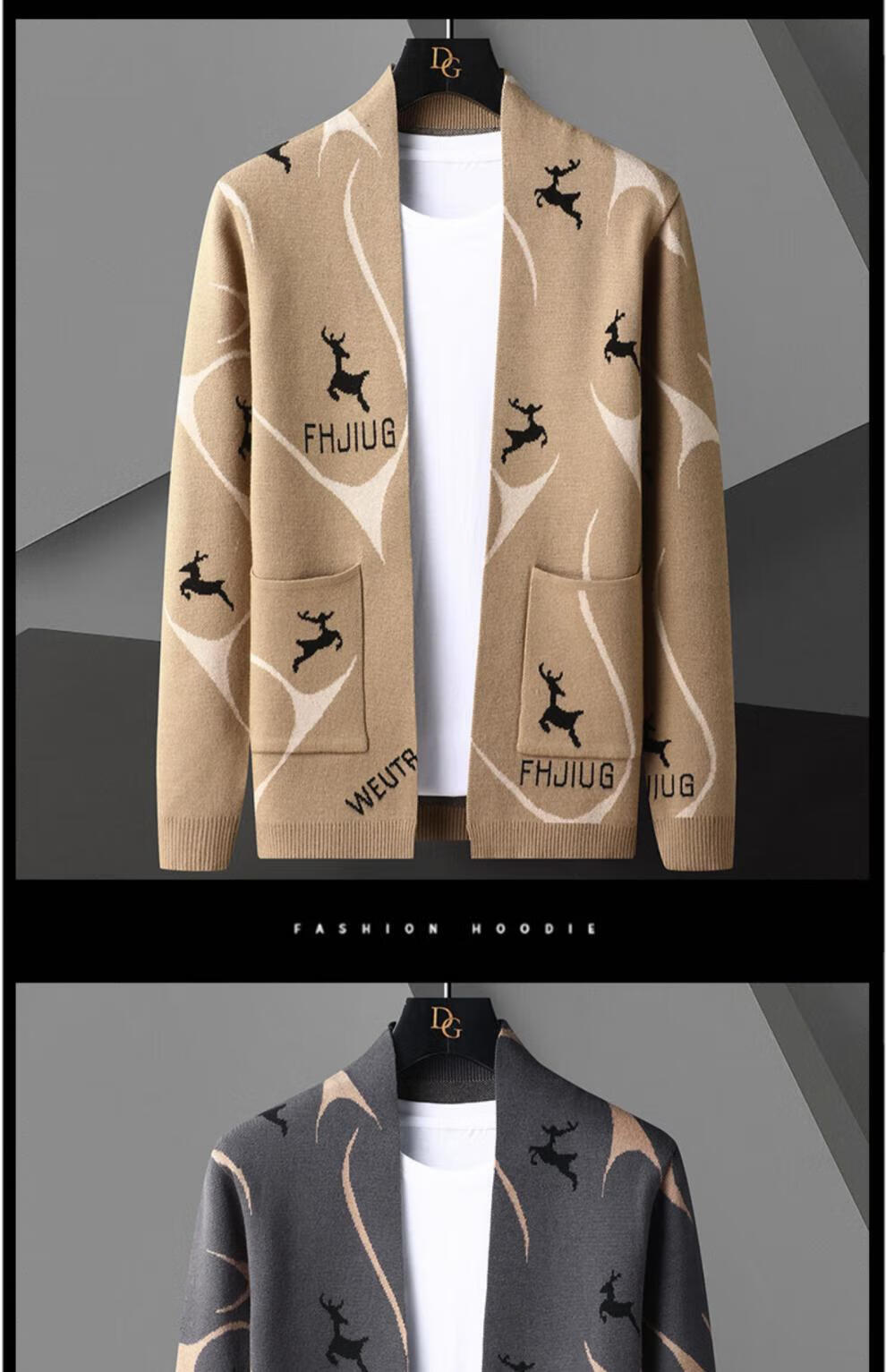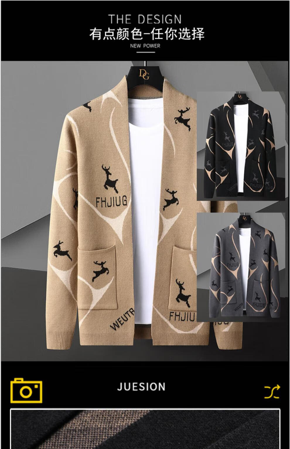 罗蒙(ROMON)针织开衫男士春秋季2025新款外穿毛衣男潮流休闲外套薄款秋装上衣 WE9927卡其色 XL (约100-120斤可穿)