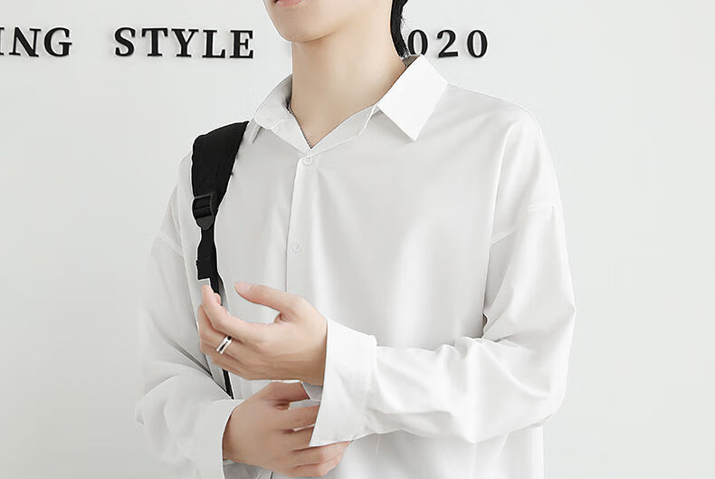 【厂家直供】黑色衬衫男长袖春秋季潮流高级感痞帅上衣男士外套休 黑色 M