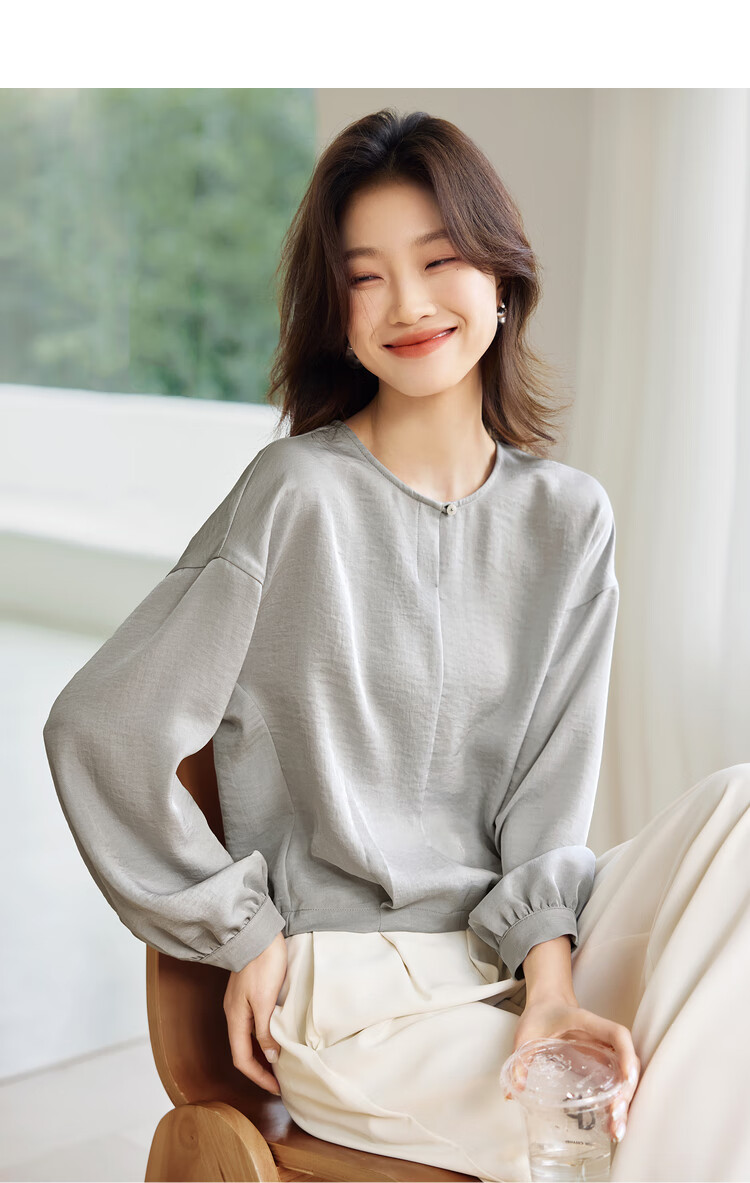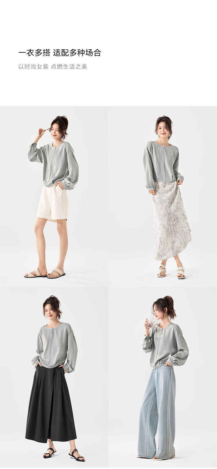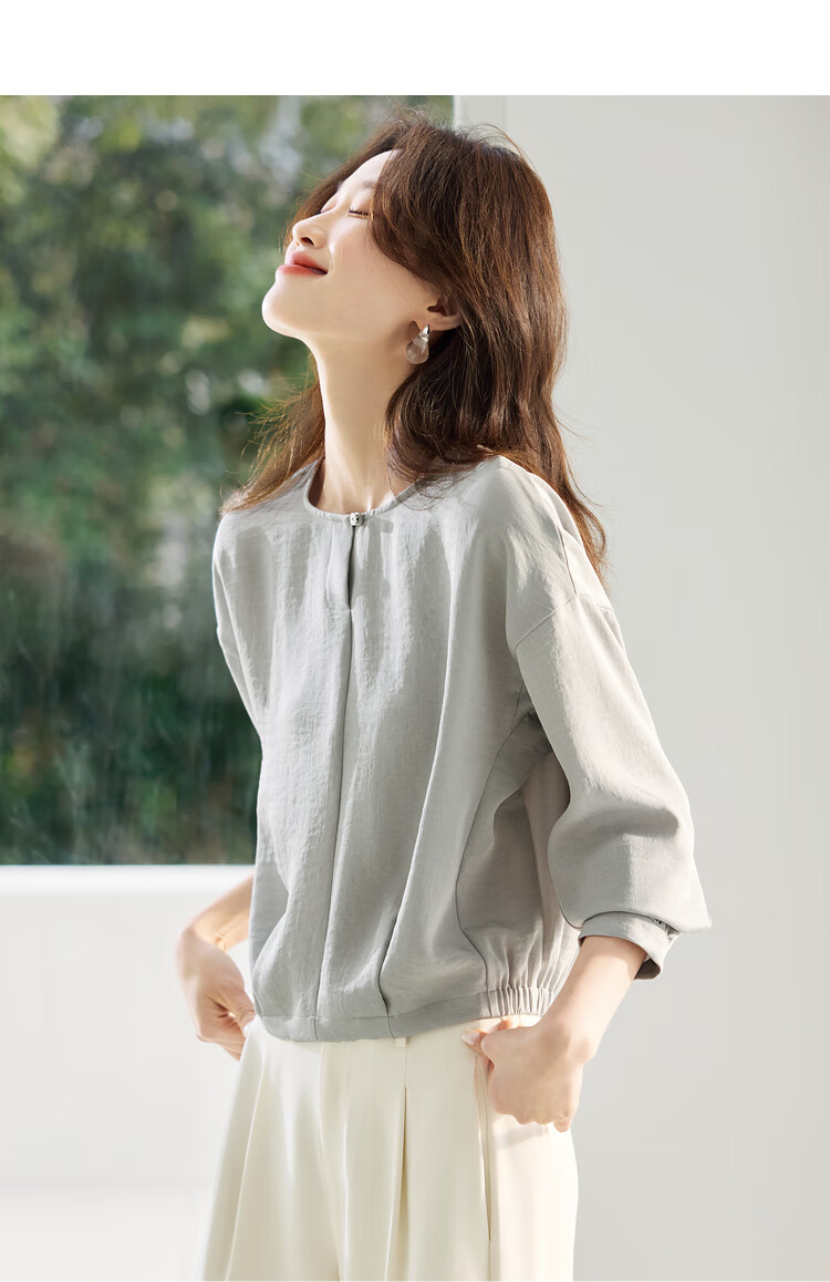 沫晗依美【轻熟风OL女衬衫】2025春季新款气质通勤百搭九分袖女休闲衬衫女 浅灰蓝 L