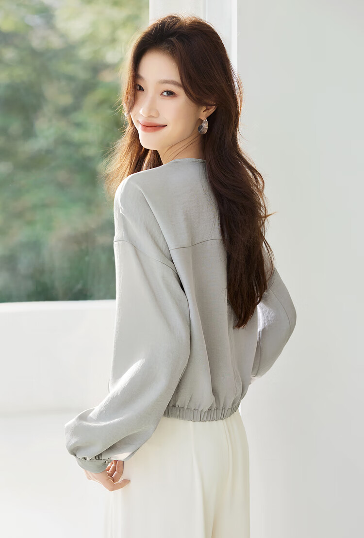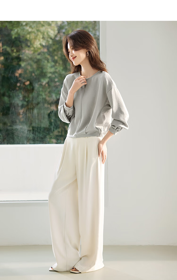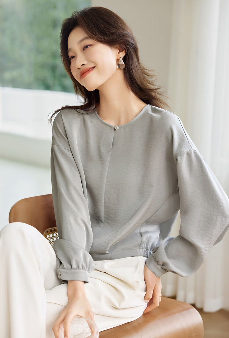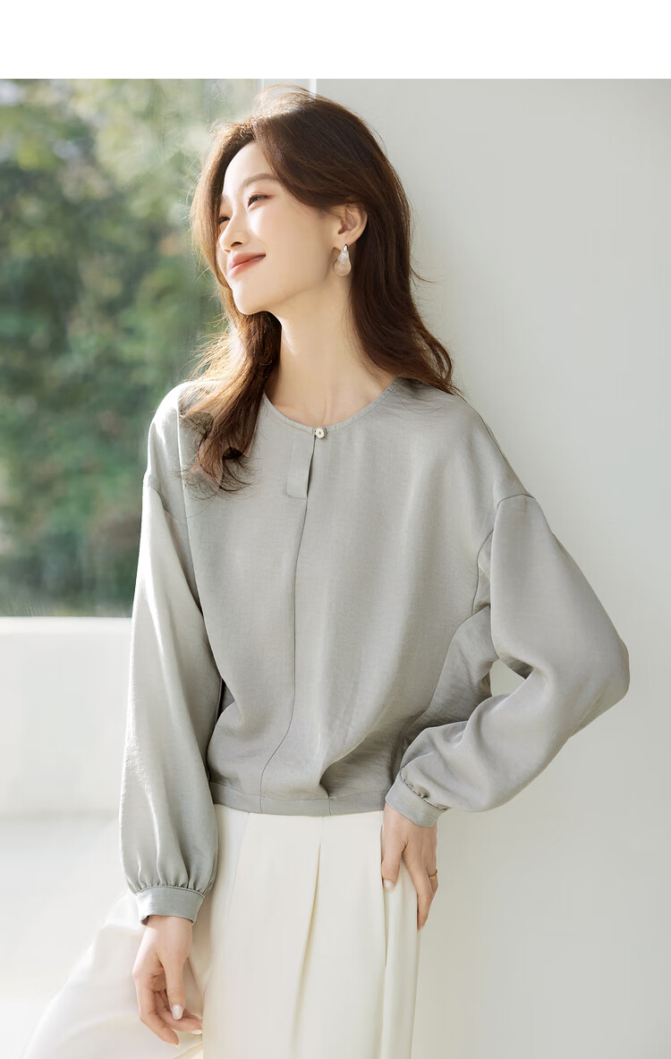 沫晗依美【轻熟风OL女衬衫】2025春季新款气质通勤百搭九分袖女休闲衬衫女 浅灰蓝 L