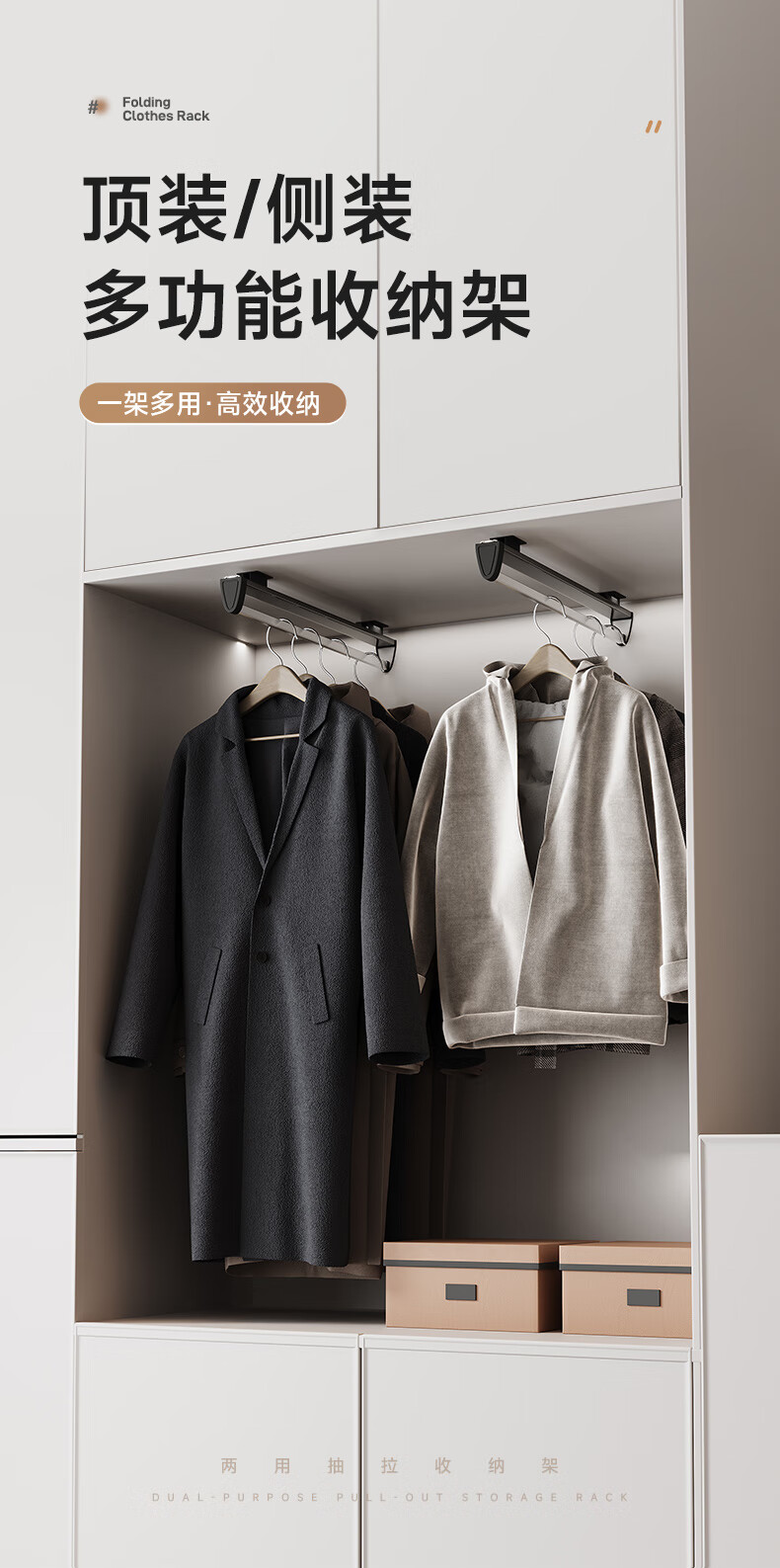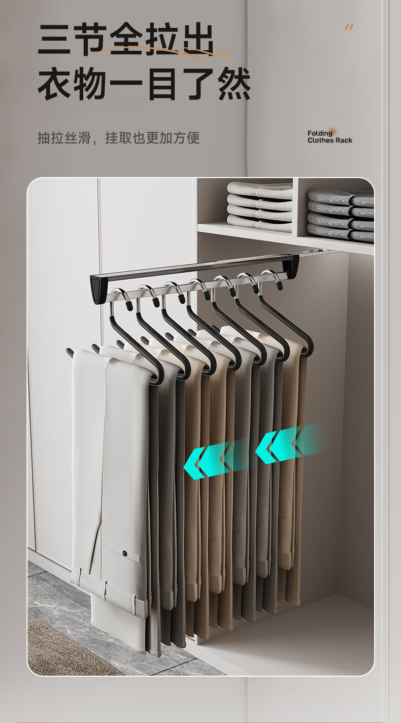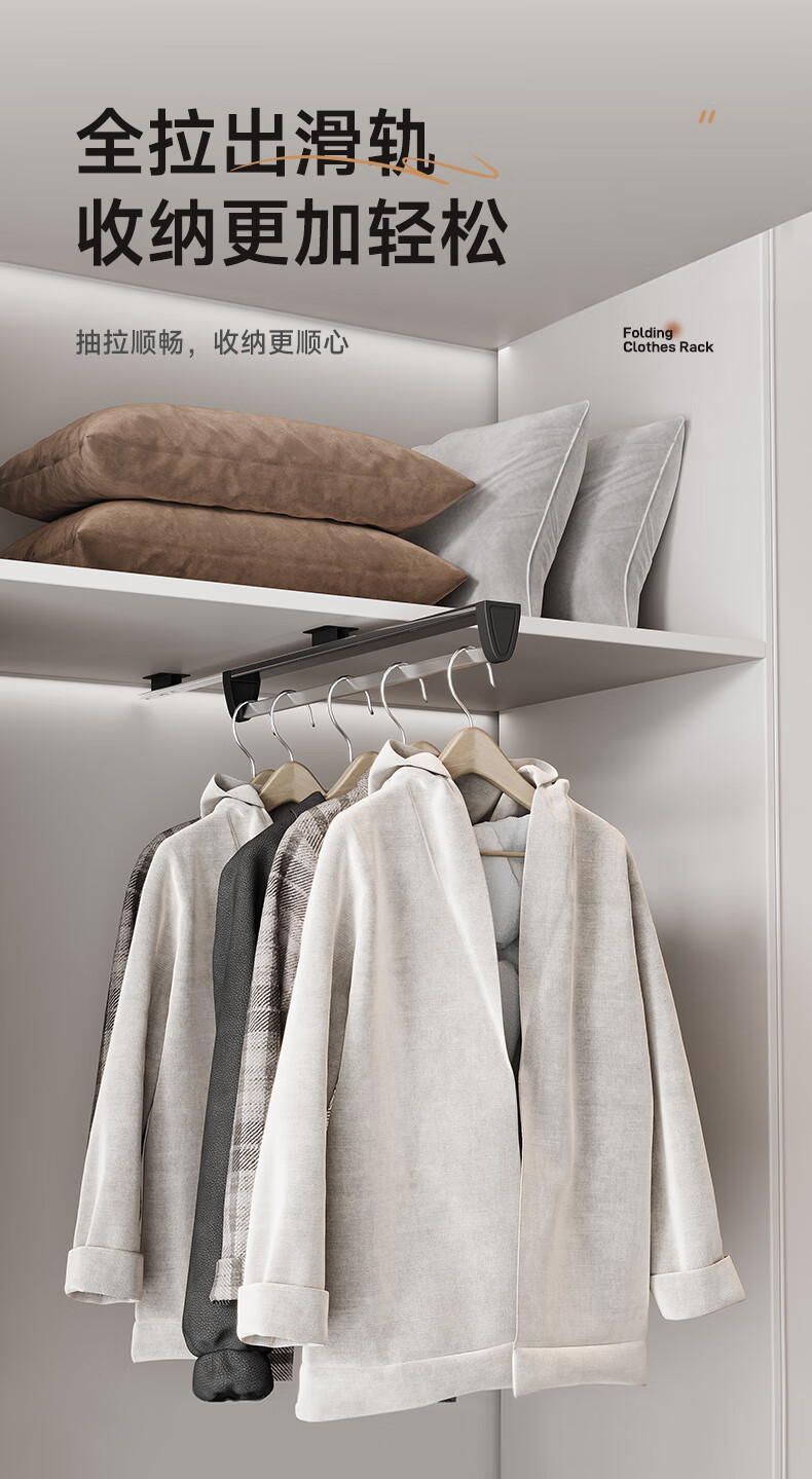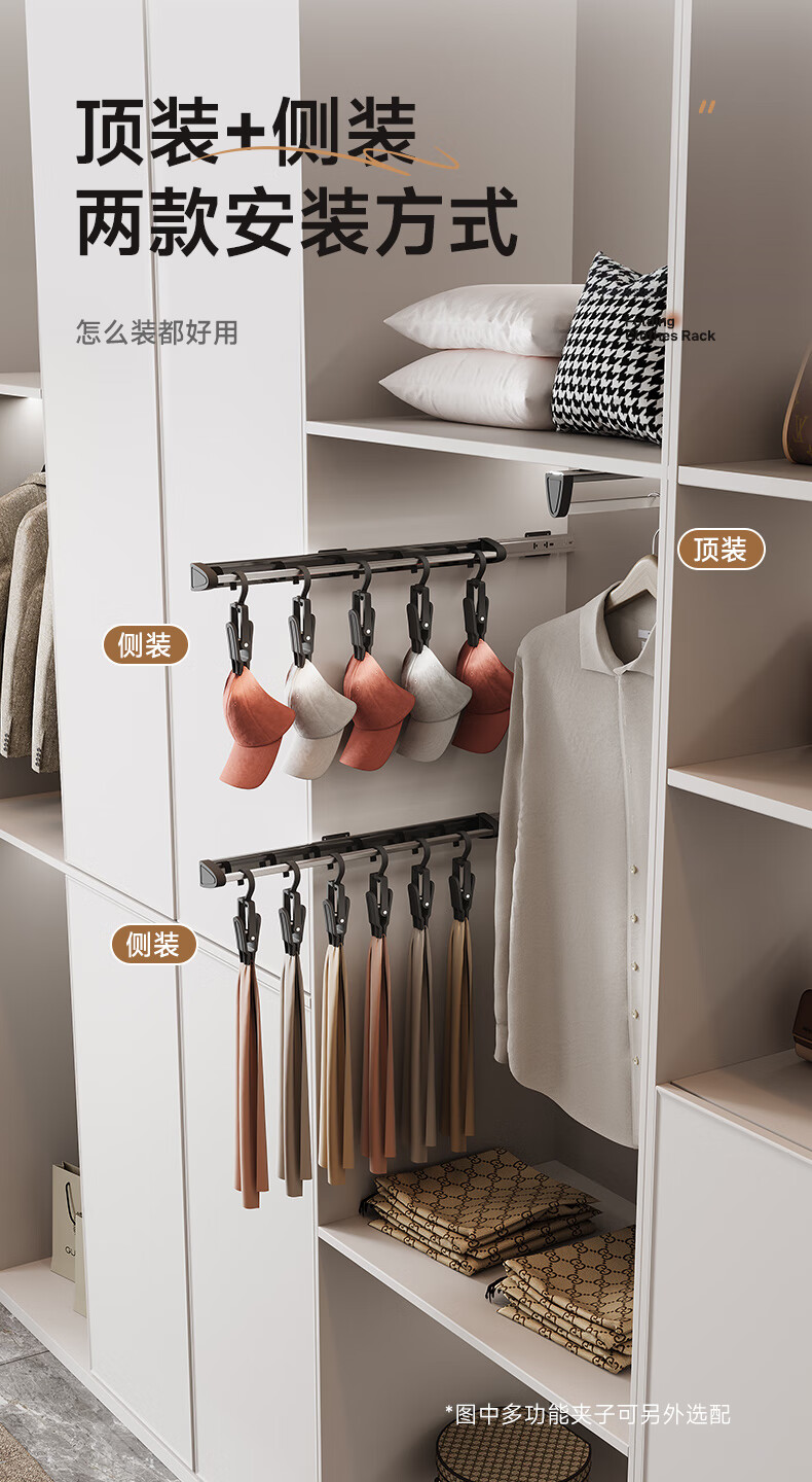 固特抽拉式可伸缩架裤架多功能挂衣杆晾衣架衣柜收纳裤挂裤抽滑轨 顶/侧两用款【柜深≥25.5】黑色