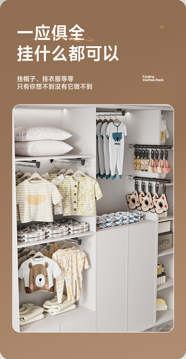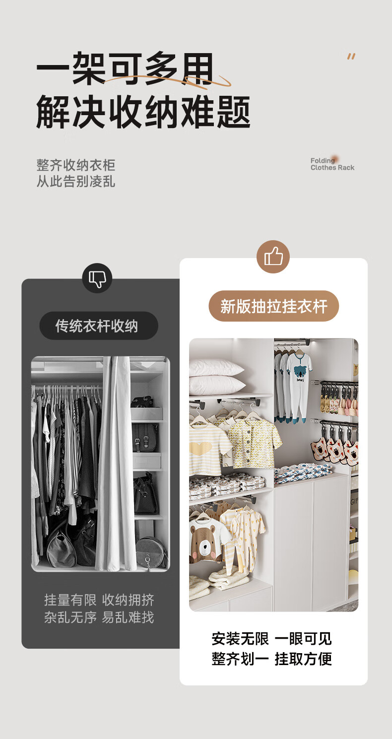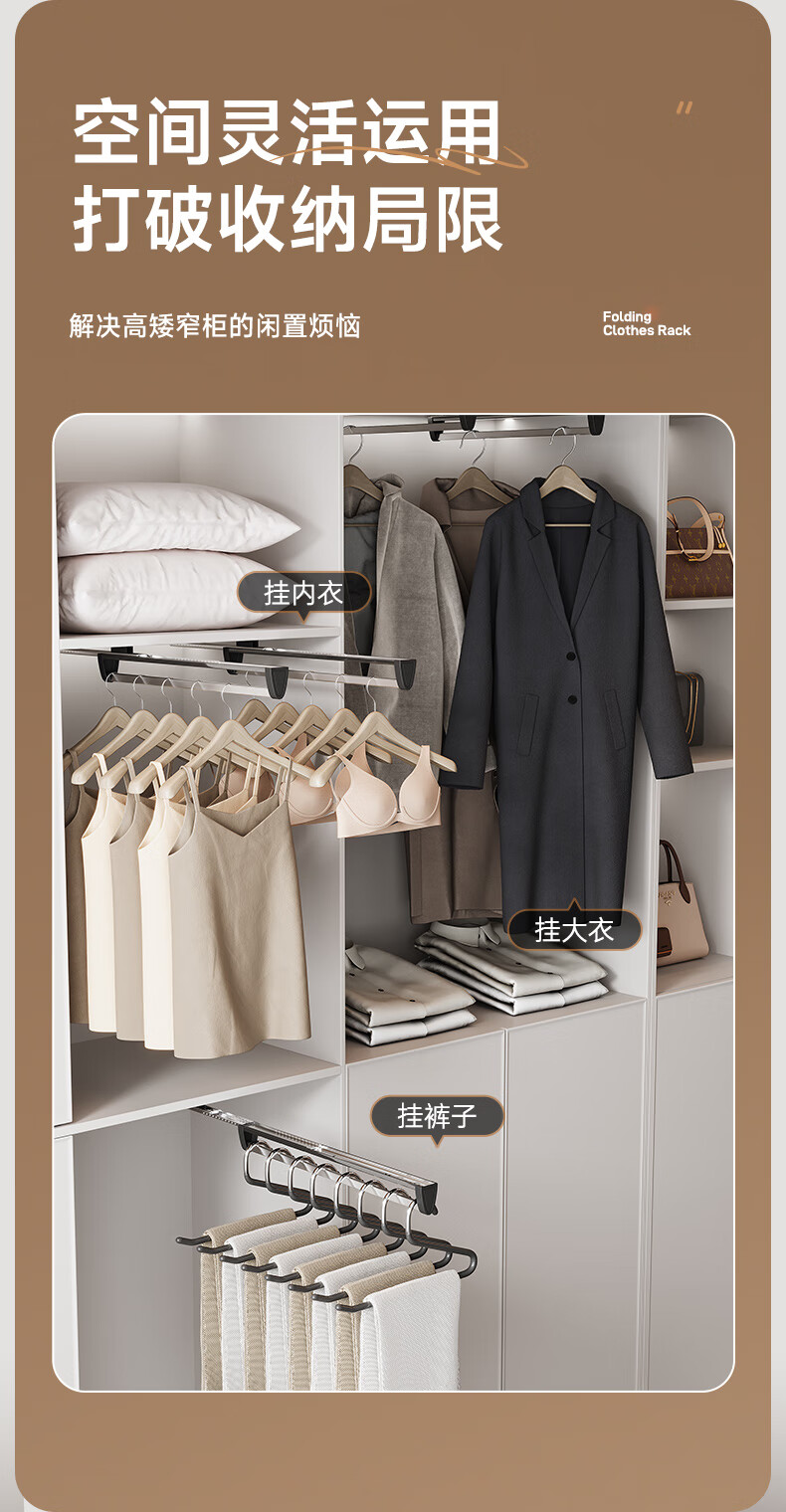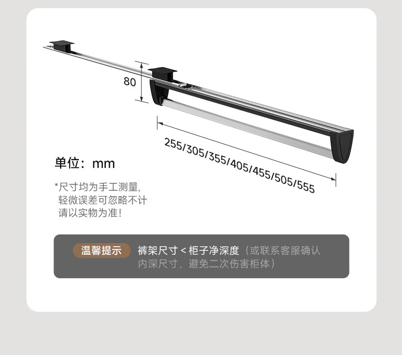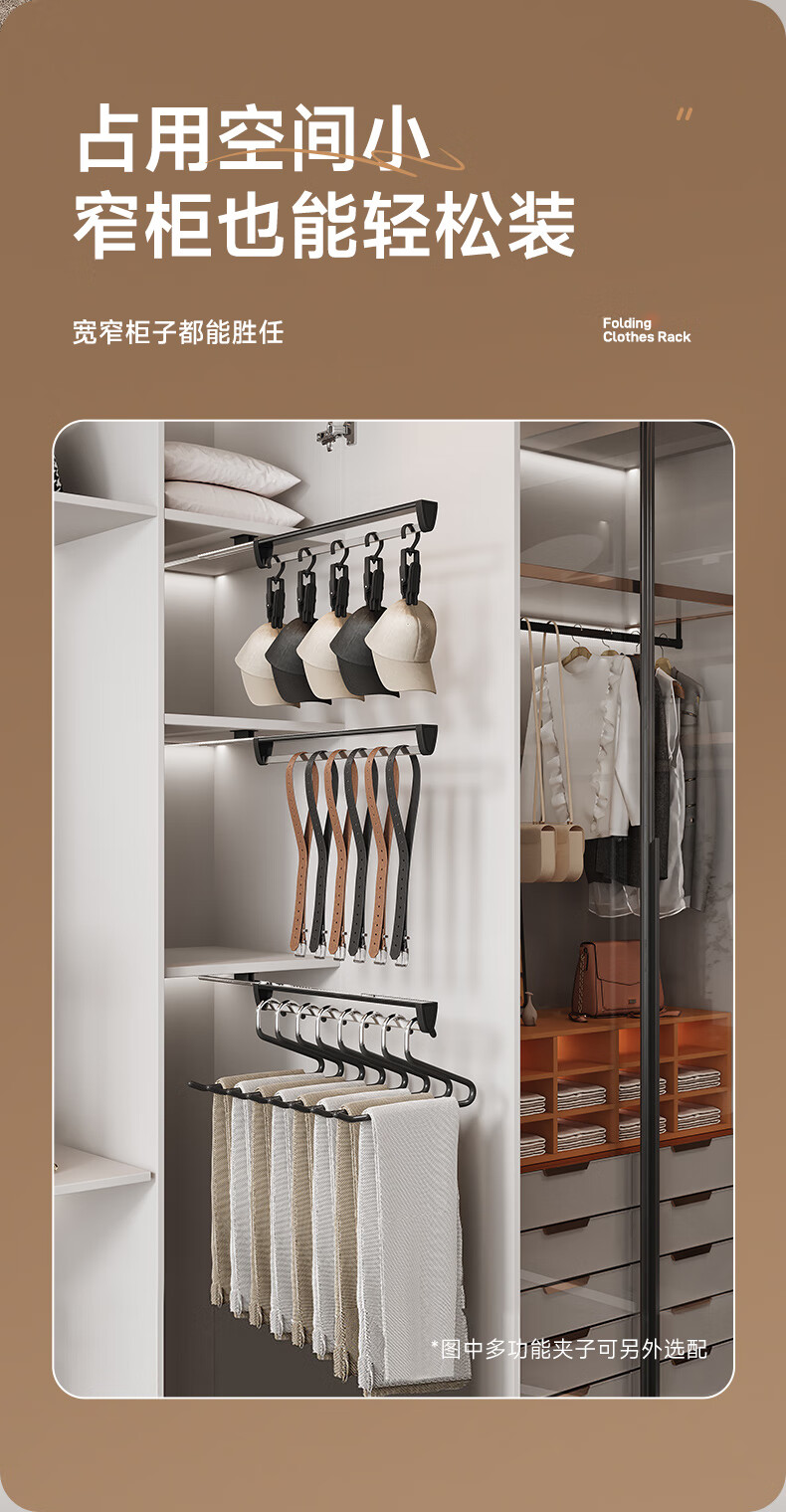 固特抽拉式可伸缩架裤架多功能挂衣杆晾衣架衣柜收纳裤挂裤抽滑轨 顶/侧两用款【柜深≥25.5】黑色