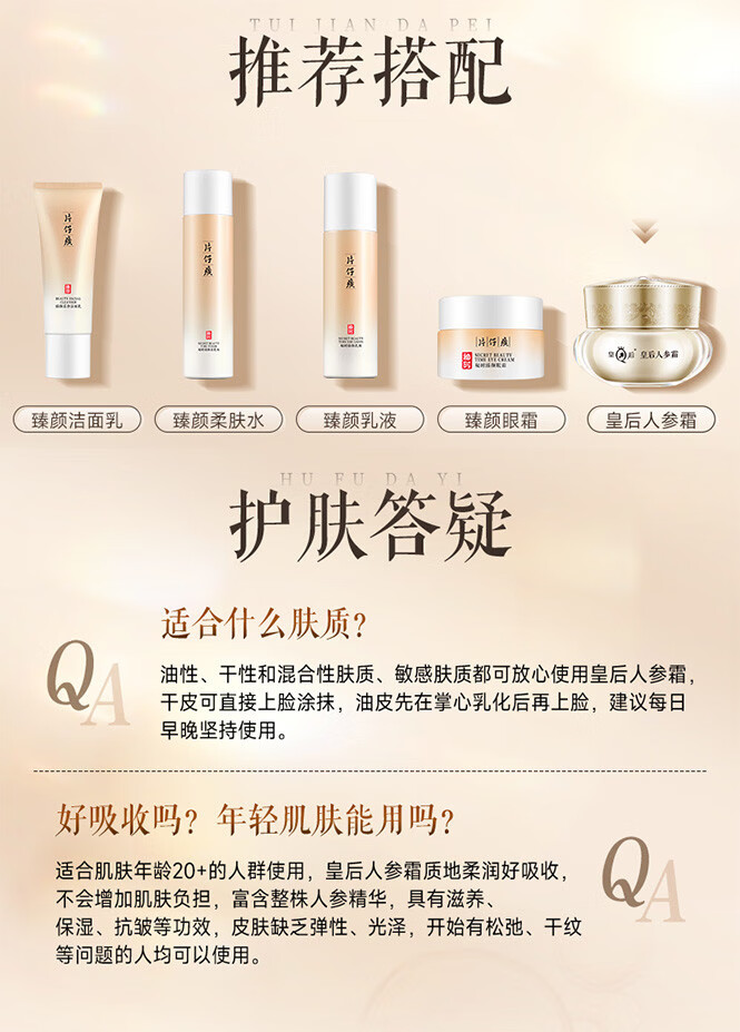 片仔癀(PZH)皇后人参霜淡纹抗皱修护面霜补水保湿紧致弹润滋养舒缓护肤品套装 人参霜 30g
