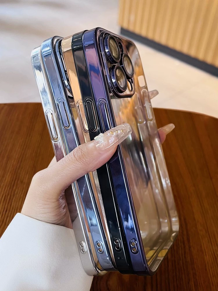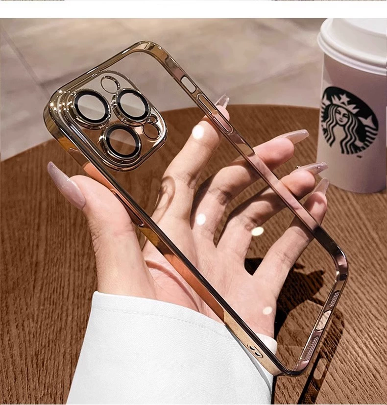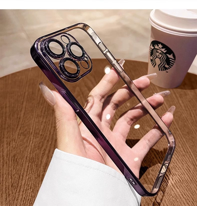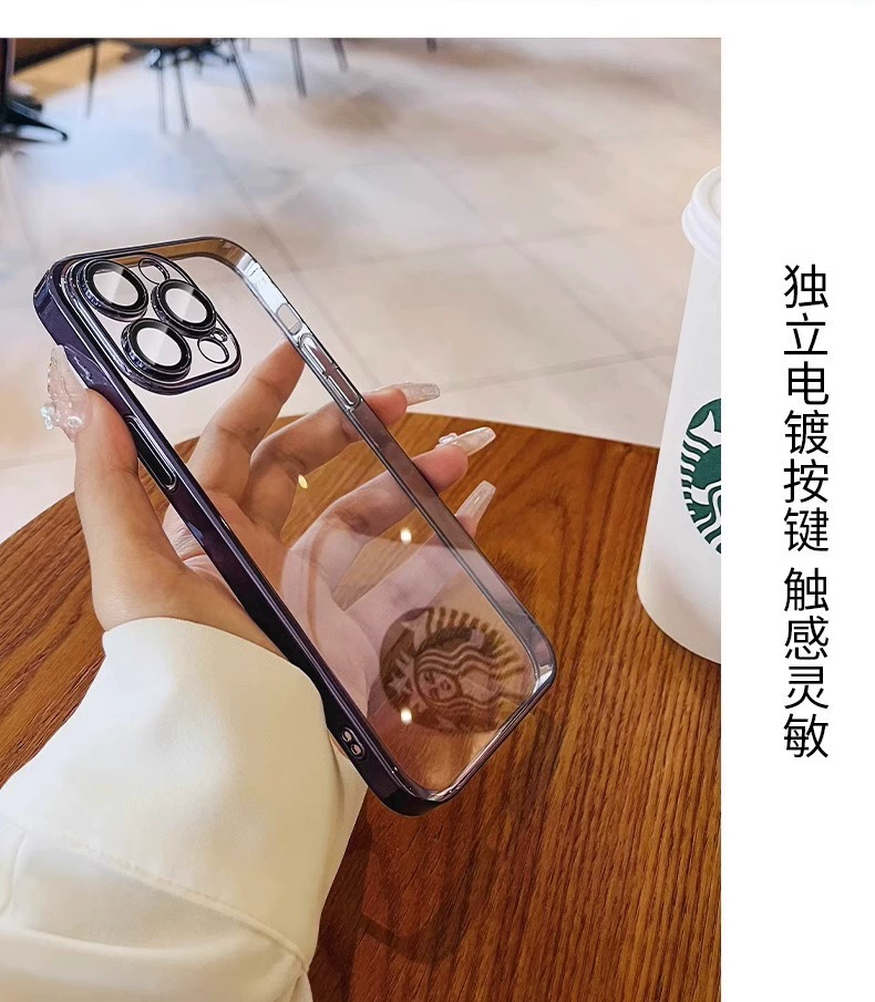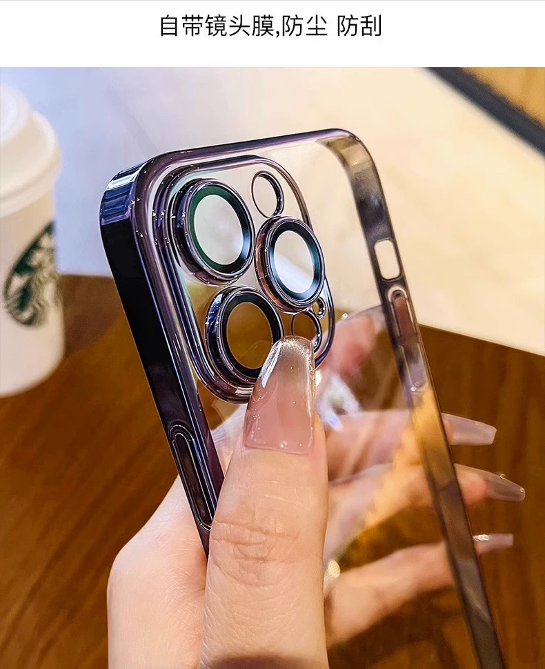 【甄选】适用iphone15手机壳tpu电镀自带镜头膜X苹果14promax软壳 粉色 iphone7/8