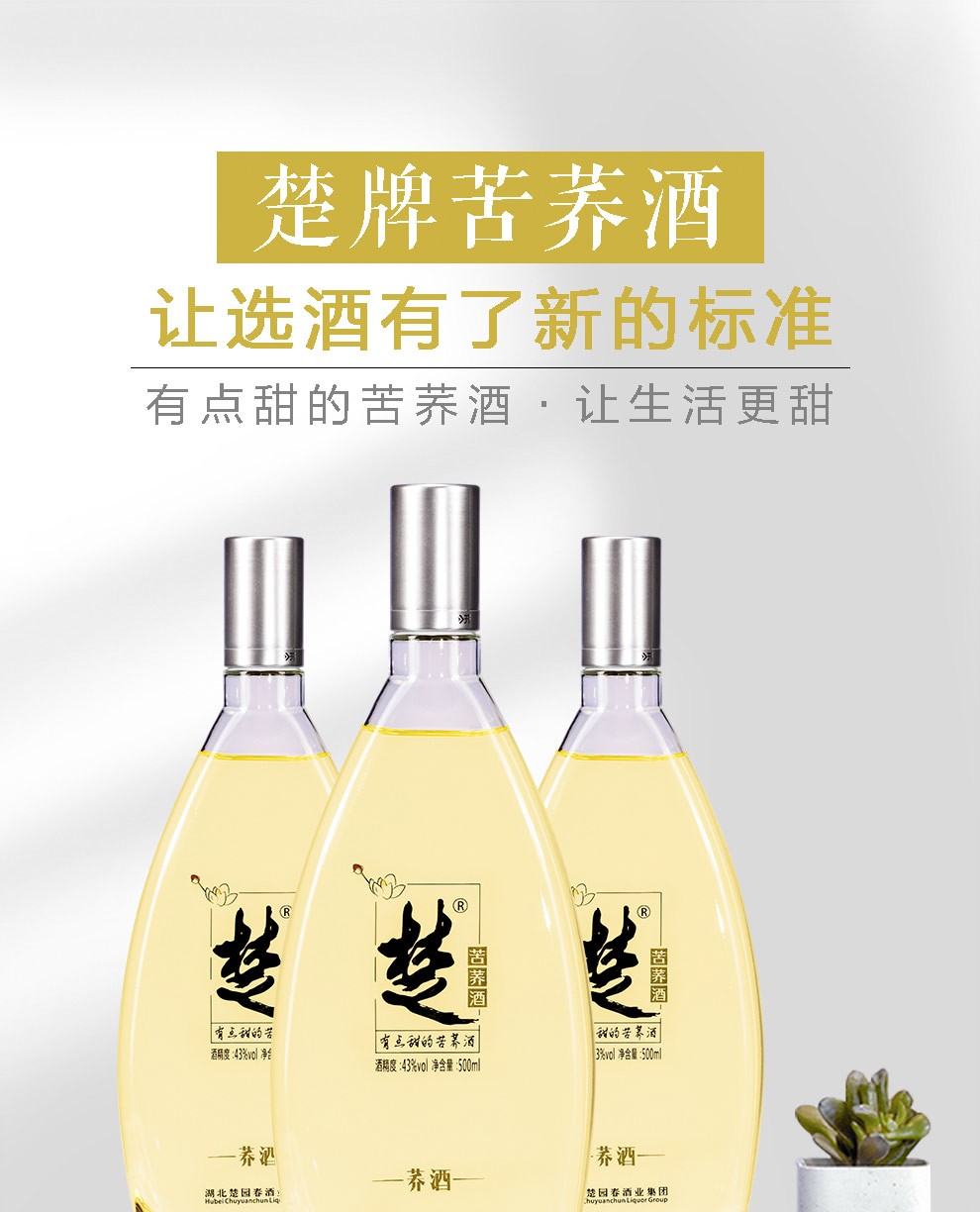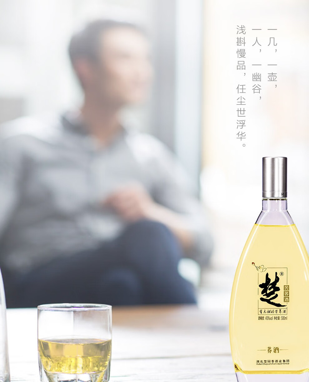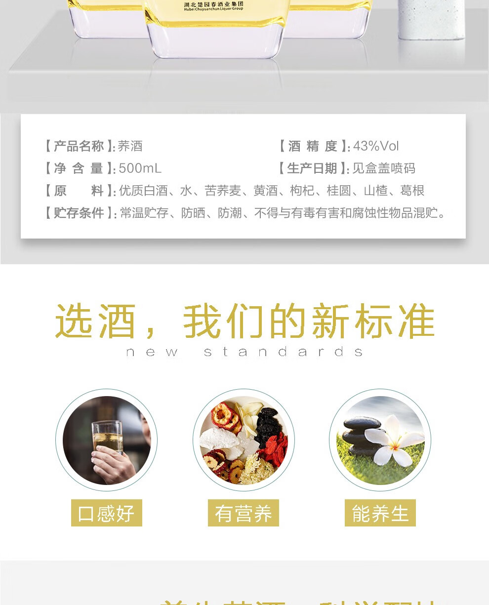 楚向往养生苦荞酒 荞酒43度光瓶简装配制白酒湖北楚园春特产名酒 43%vol 500mL 1瓶