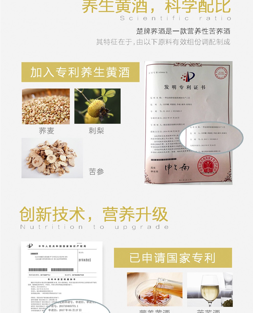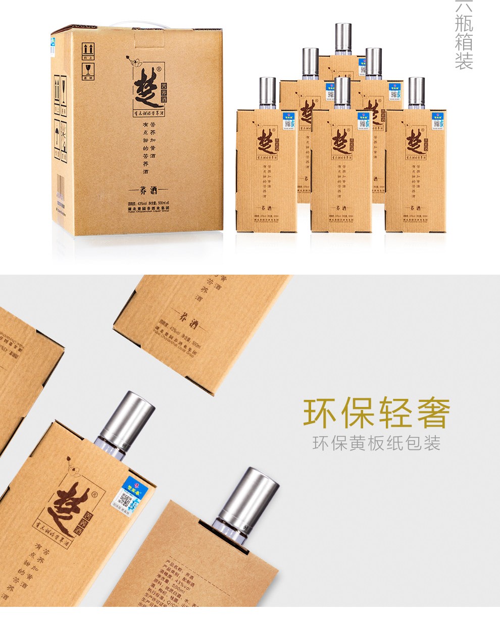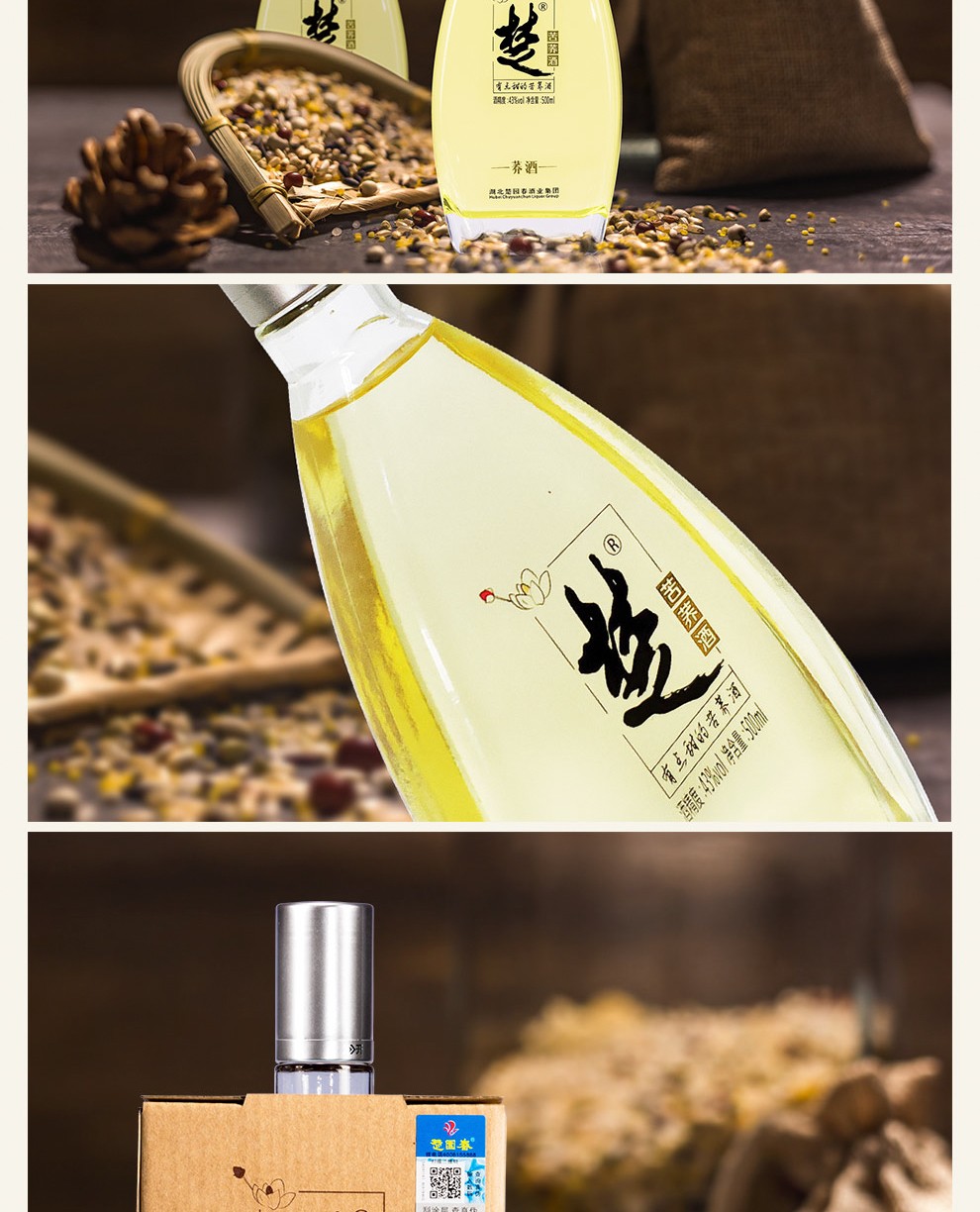 楚向往养生苦荞酒 荞酒43度光瓶简装配制白酒湖北楚园春特产名酒 43%vol 500mL 1瓶