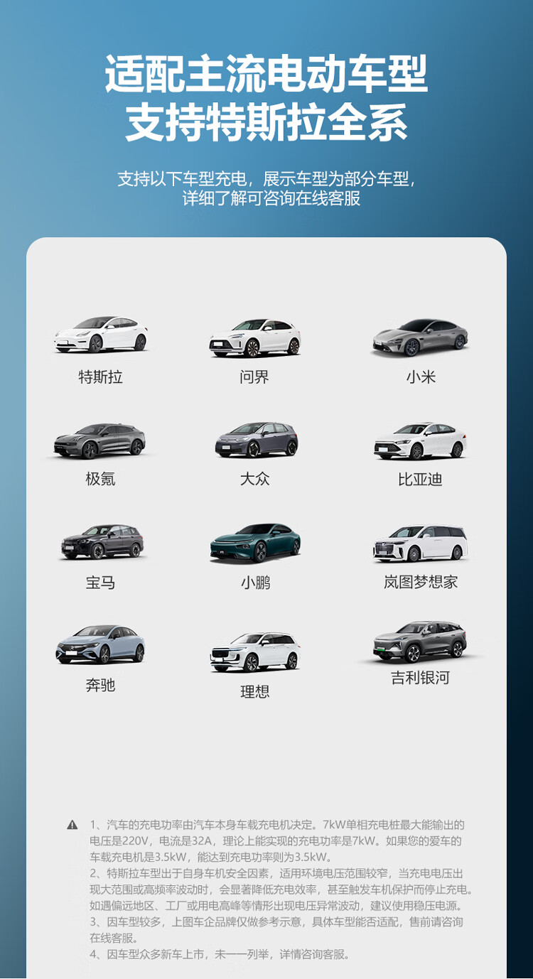 公牛充电桩家用新能源汽车交流适配于小米su7/yu7汽车特斯拉比亚迪问界 7KW乐享4G款含基础送装一体