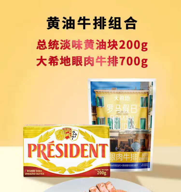 大希地整切调理盒装眼肉牛排700g * 总统发酵动物黄油200g