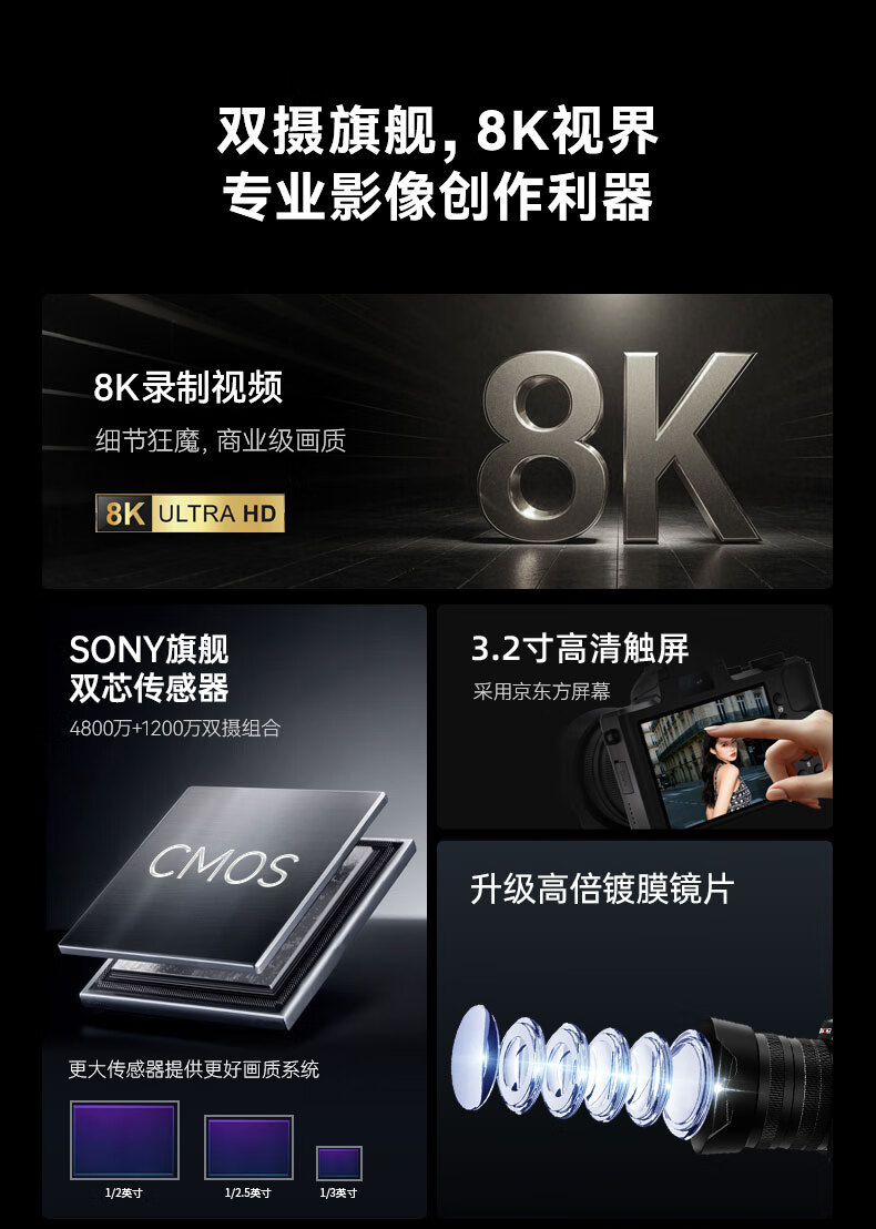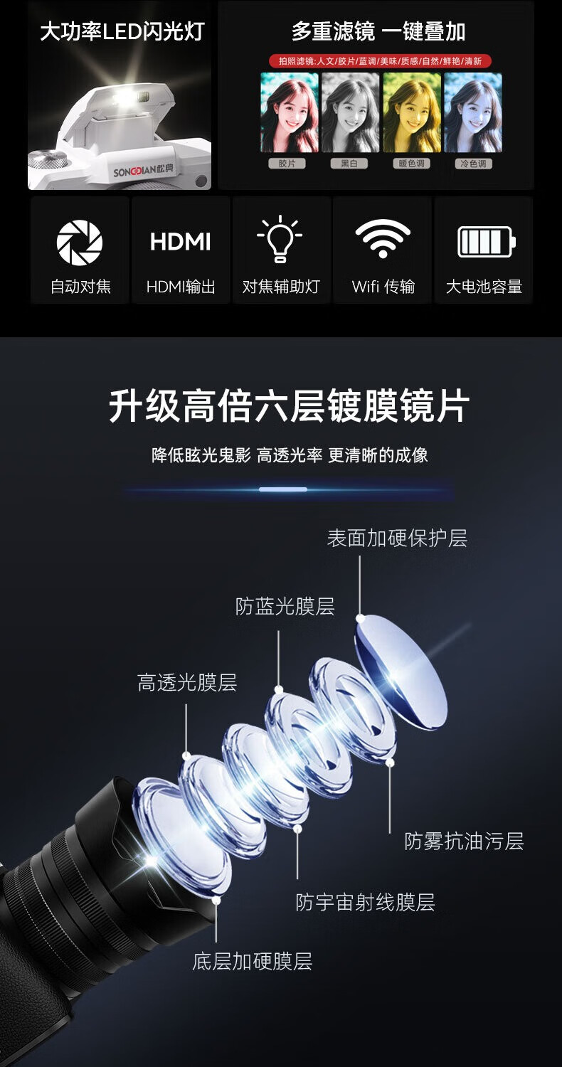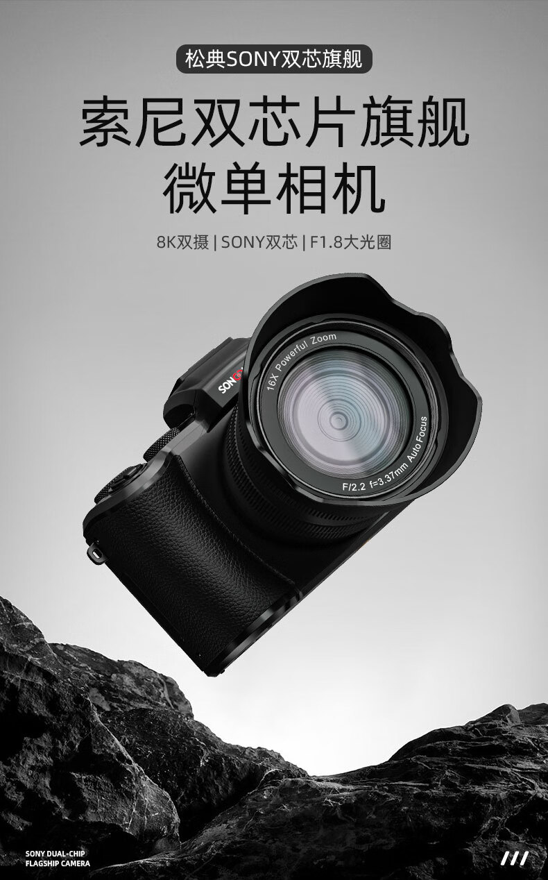松典【1/2英寸传感器+索尼旗舰双芯+触摸屏】微单数码相机学生入门级微单照相机相机拍照旅游专用相机 【1/2寸传感+索尼旗舰双芯+3.2寸触摸屏】黑色 256G内存