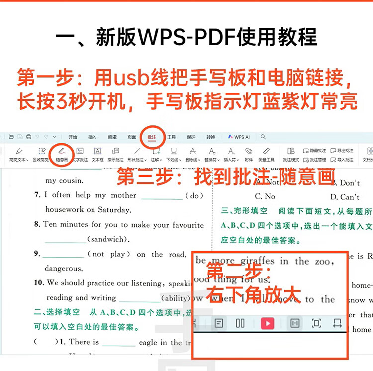 罗博智慧笔纸笔手写板数位板微课录制网课教学直播手写板电脑写字板 连接电脑手机 王者手写板支持win系统/安卓手机平板