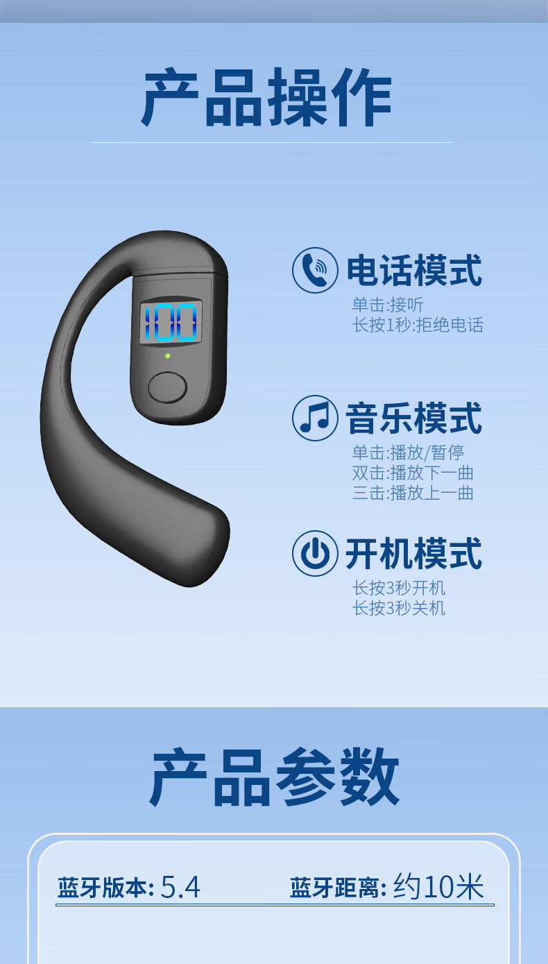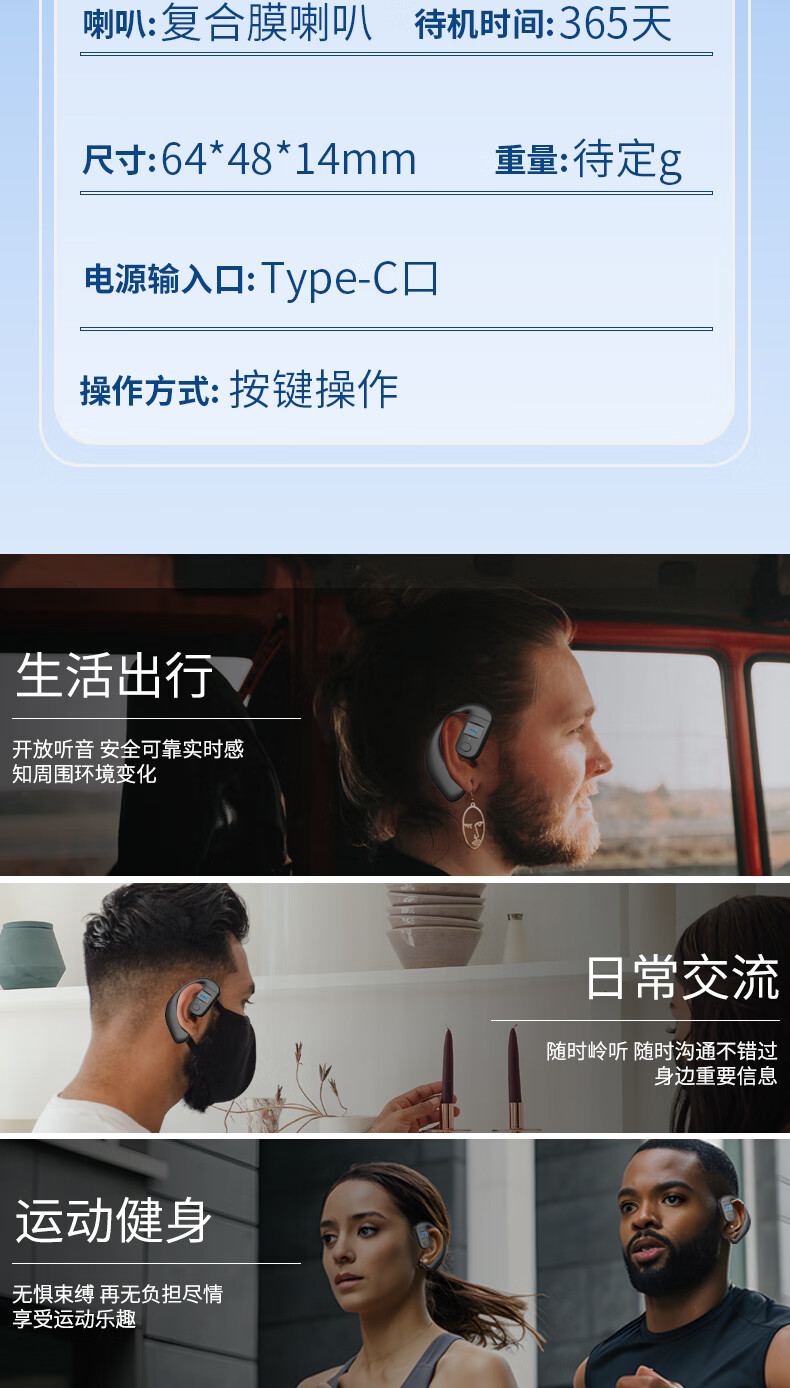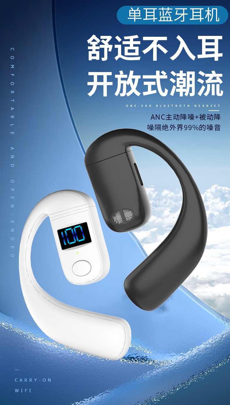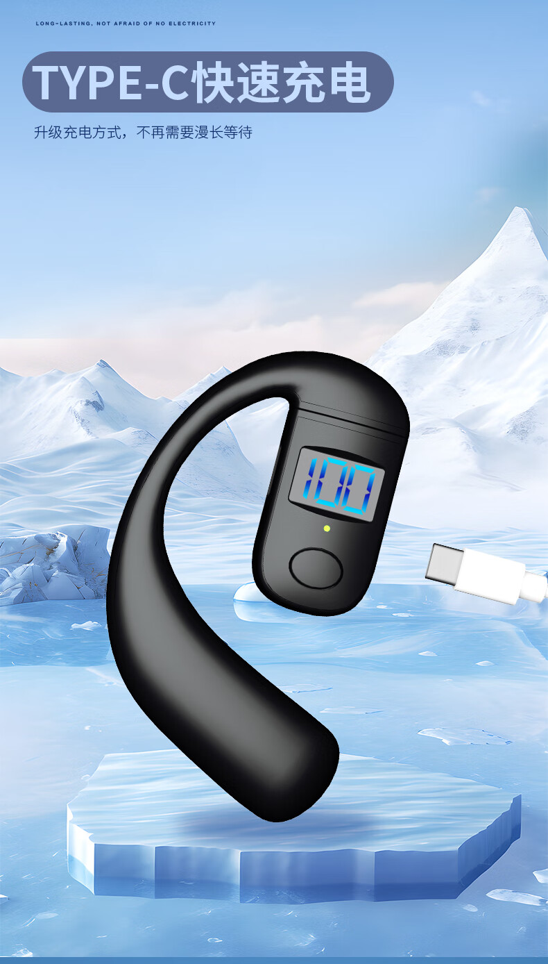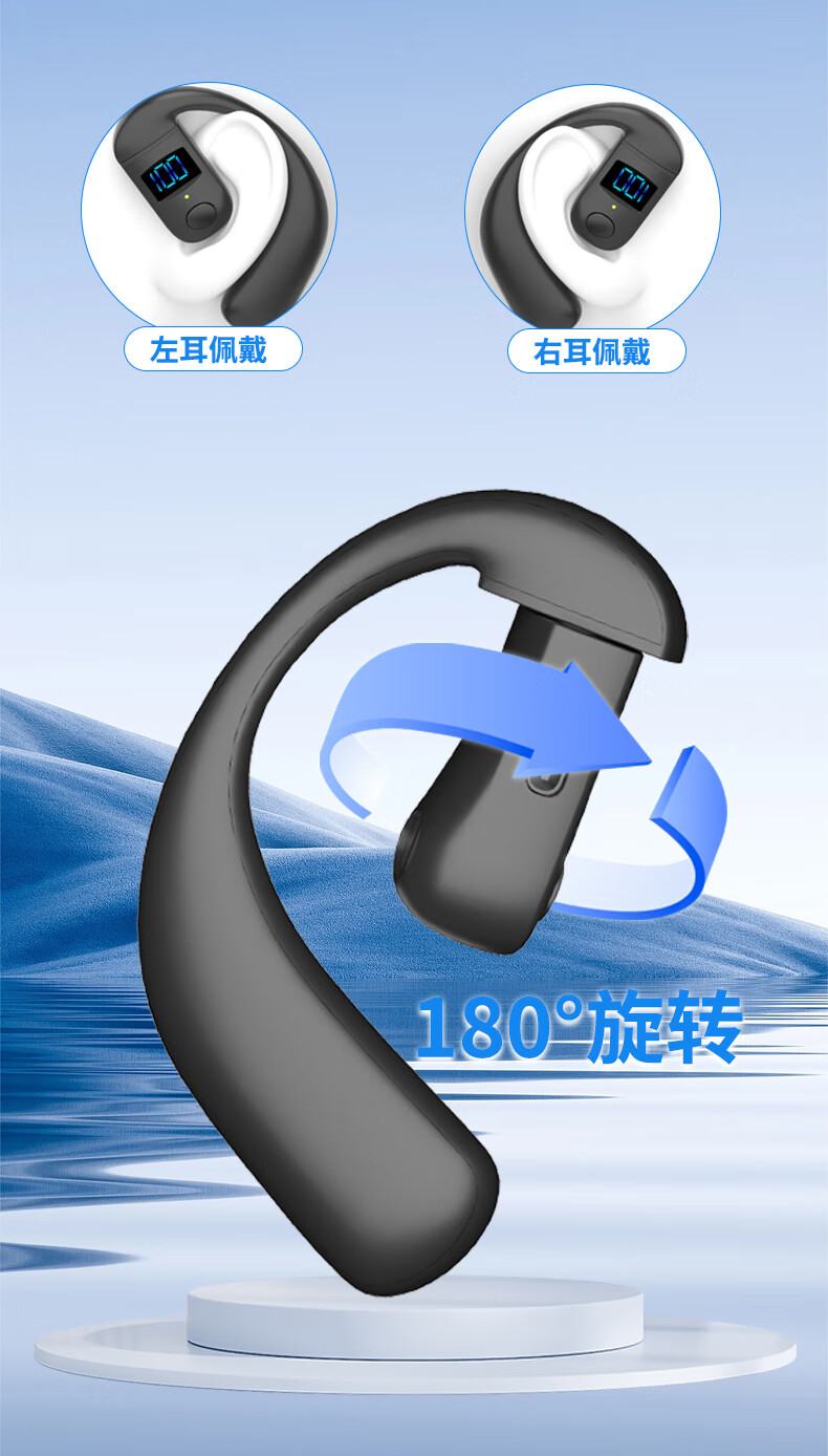 鑫羽音【厂家直供】【左右耳均可戴】2024新款空气骨传导蓝牙耳机 超长 黑-万元音质+超长续航+高清通话 【左右耳均可佩戴】蓝牙5.4V