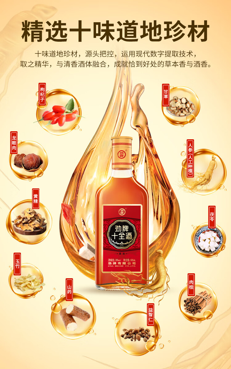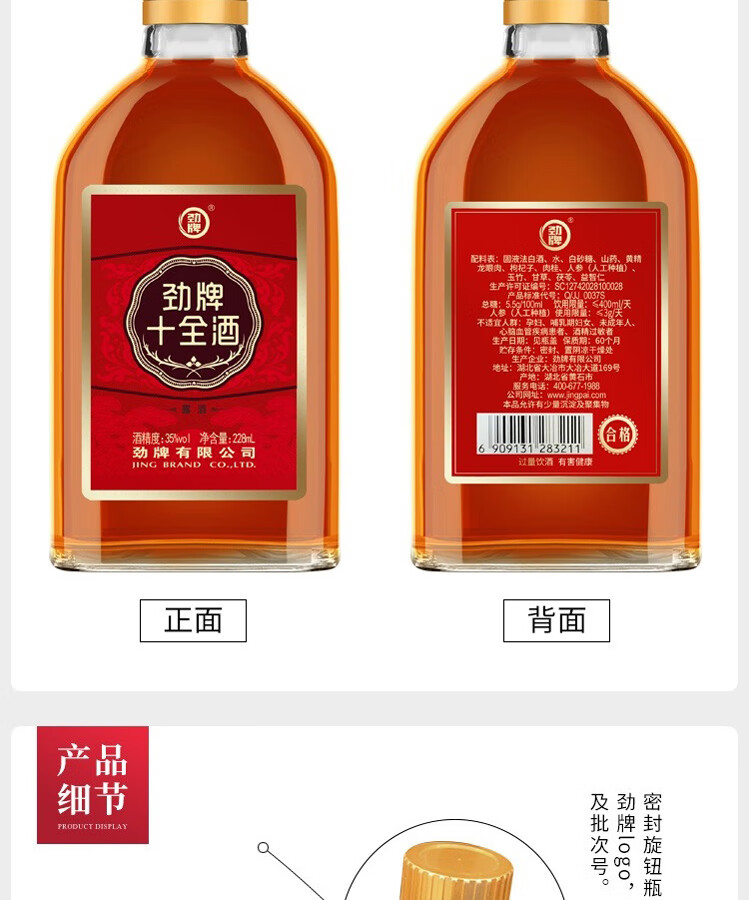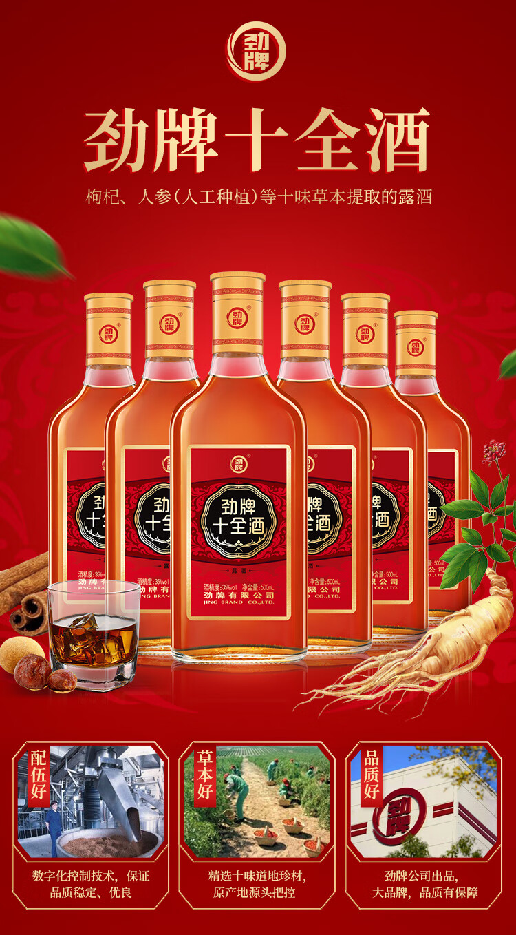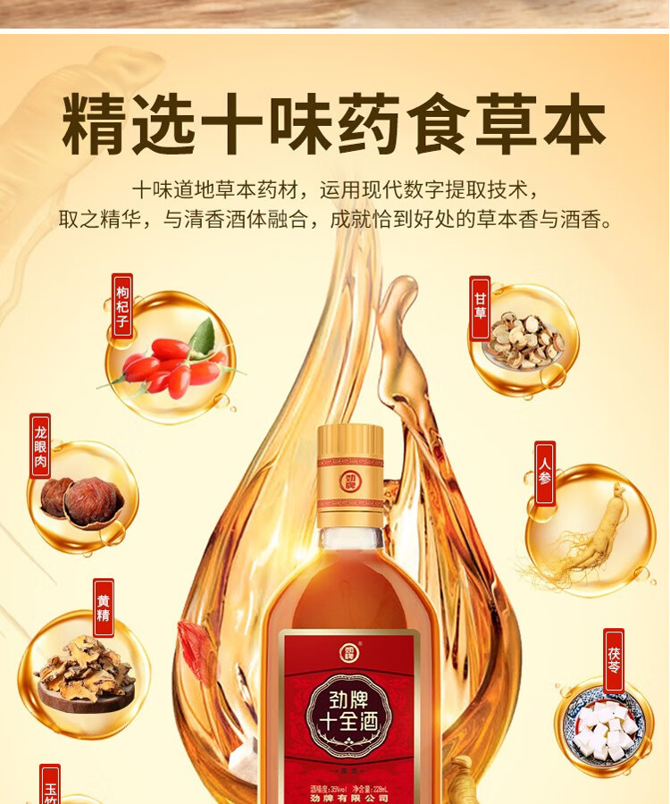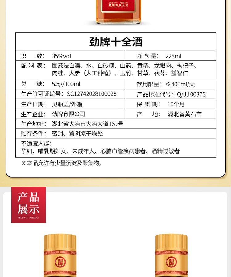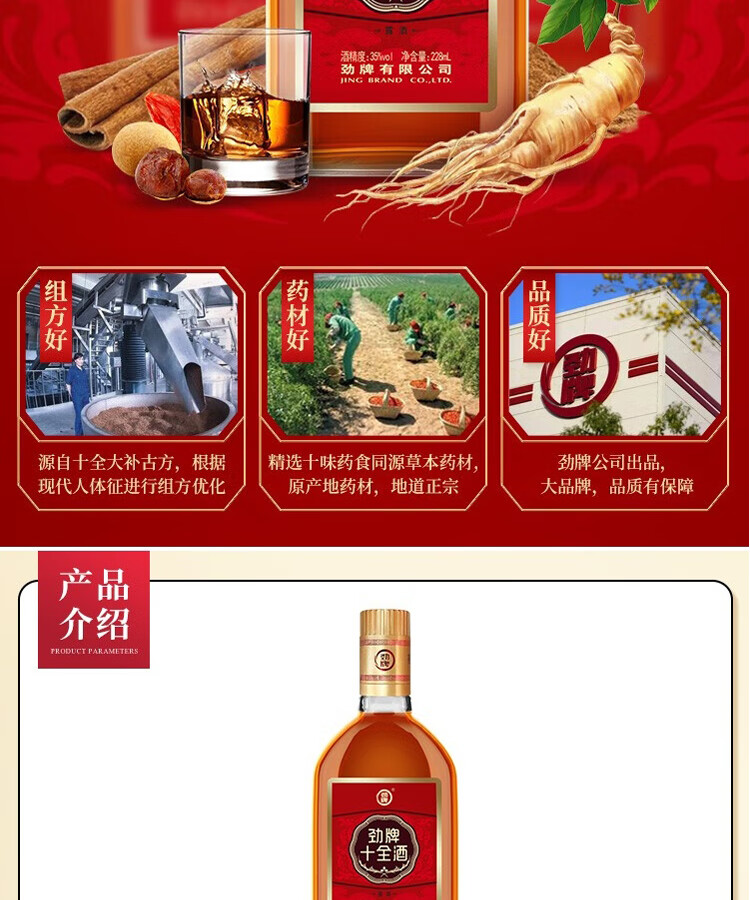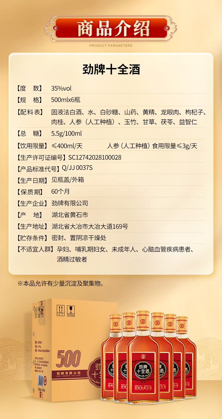 劲牌35度十全酒 养生酒 自饮送礼 送父母 35度 228mL 6瓶 【228礼盒】