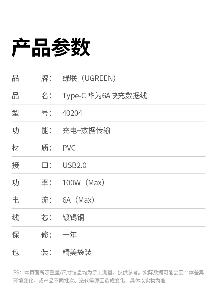 绿联Type-C数据线6A适用华为超级快充100W/66W充电线Pura80/70/Mate70/60Pro/X6荣耀小米安卓手机1.5米