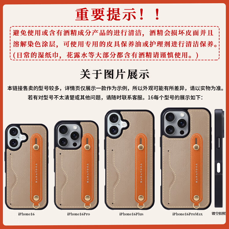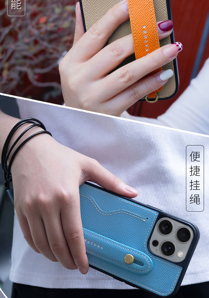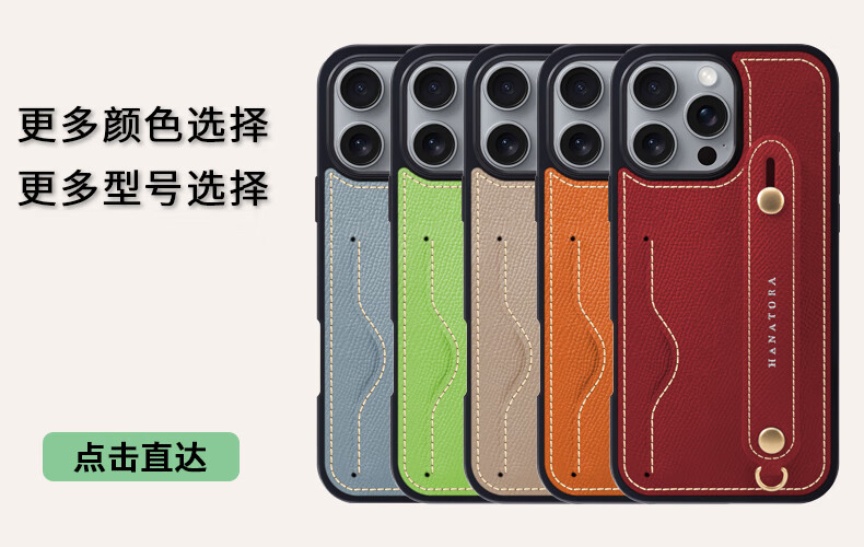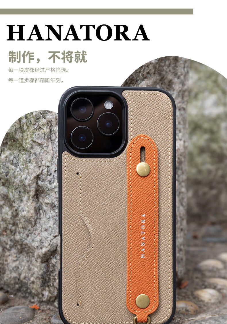 花虎(HANATORA)苹果16Promax手机壳新款腕带挂绳带支架真皮iPhone16Promax高端全包防摔卡包男款女生简约日式 【红色】配挂脖绳 iPhone 16 Pro Max