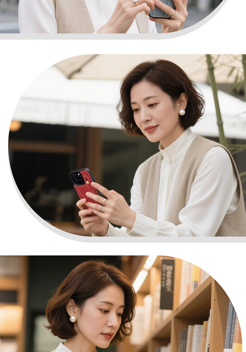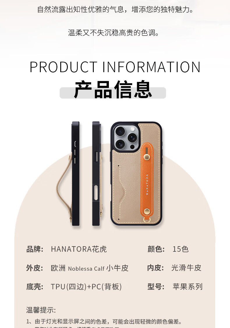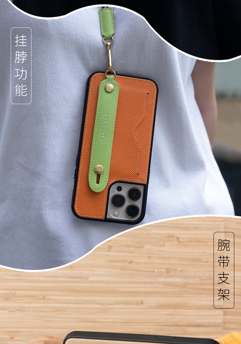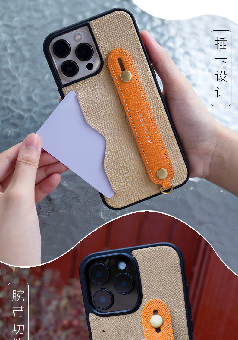 花虎(HANATORA)苹果16Promax手机壳新款腕带挂绳带支架真皮iPhone16Promax高端全包防摔卡包男款女生简约日式 【红色】配挂脖绳 iPhone 16 Pro Max