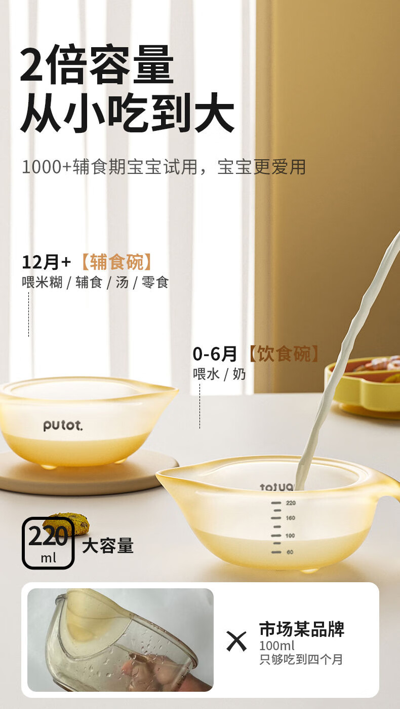 PUTOT婴儿辅食碗宝宝专用硅胶软嘴鹰嘴碗新生儿喂水喂奶喝汤尖嘴米糊碗 鹰嘴碗【宝宝喂养神器】 【新升级鹰嘴口】液态硅胶辅食碗