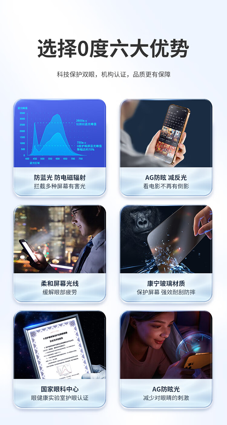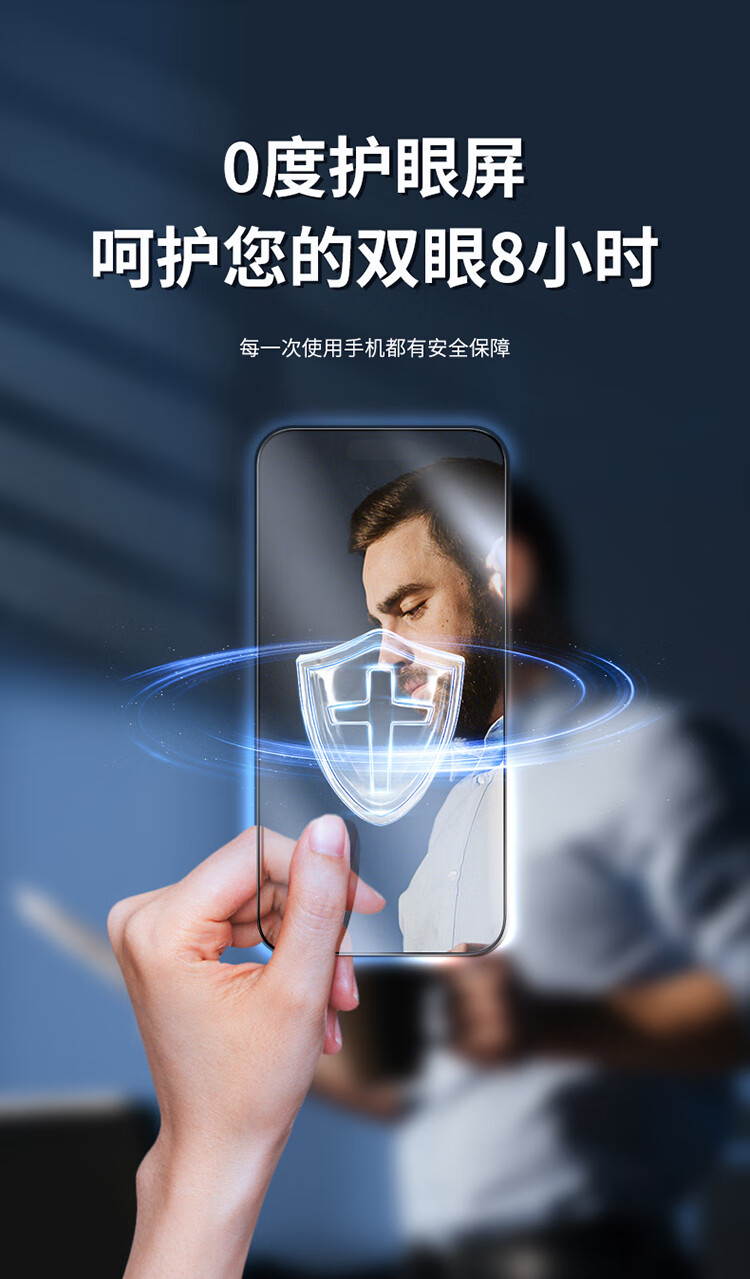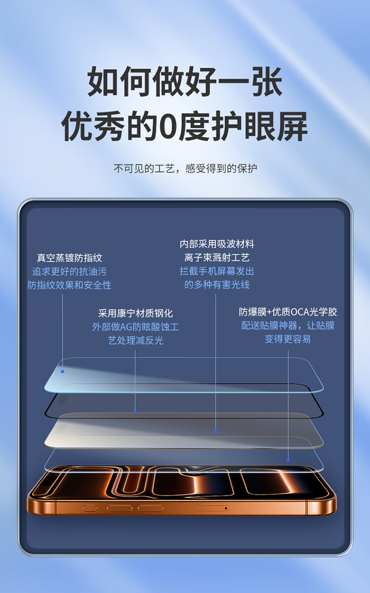 0度适用苹果iPhone17Promax钢化膜17Pro手机膜苹果17稀土护眼康宁玻璃抗蓝光防摔抗指纹保护贴膜 稀土护眼八项防护-AG防眩(康宁) iPhone17Promax