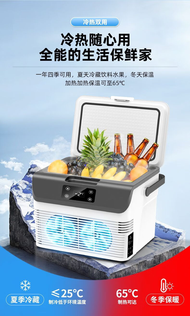 凯吉熊 2025新款车载冰箱220V12V24V通用车家两用宿舍冷藏便携药品母乳 双核数显提手款 车家两用 15升 母乳药品胰岛素中药疫苗饮料冷藏