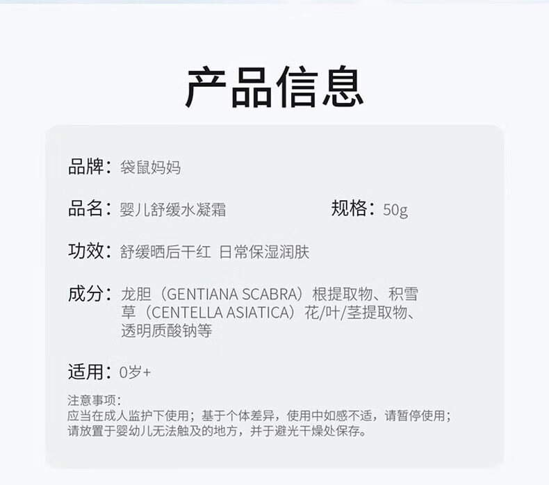 袋鼠妈妈(Kangaroo Mommy)小冰霜婴幼儿童面霜舒缓干痒退红滋润保湿霜 【舒缓保湿】50g