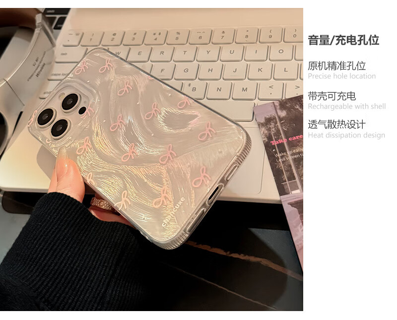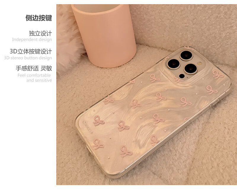 【优选】粉色蝴蝶结适用苹果15手机壳iphone13promax防摔12硬14少 1个银色小白点黑结【光油】 11pro