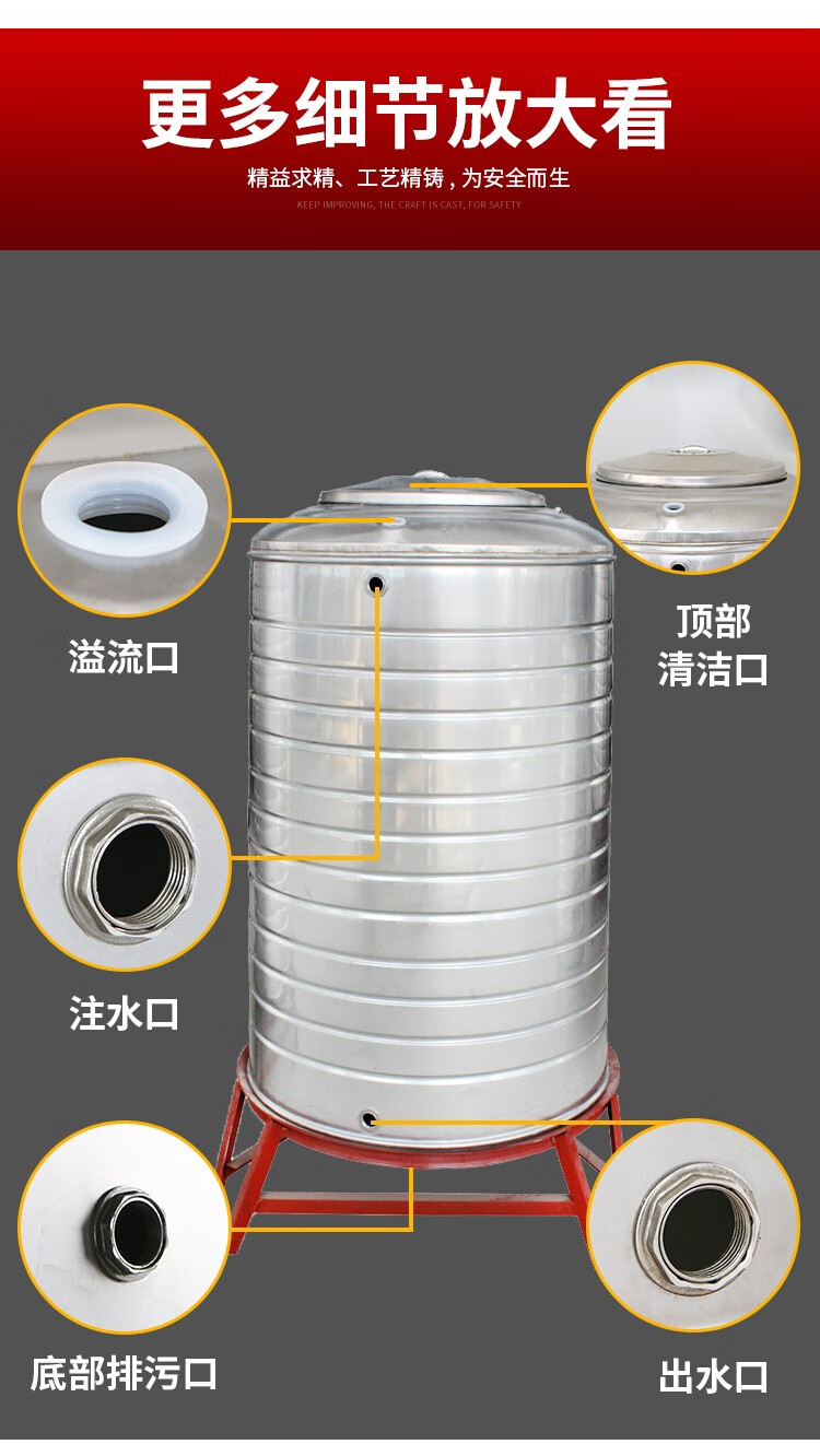 不锈钢水箱储水桶水塔储水罐水箱家用蓄水大容量太阳能凉水桶304 实标240斤--直径50总高80cm 含支