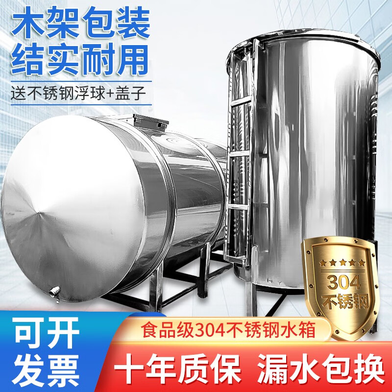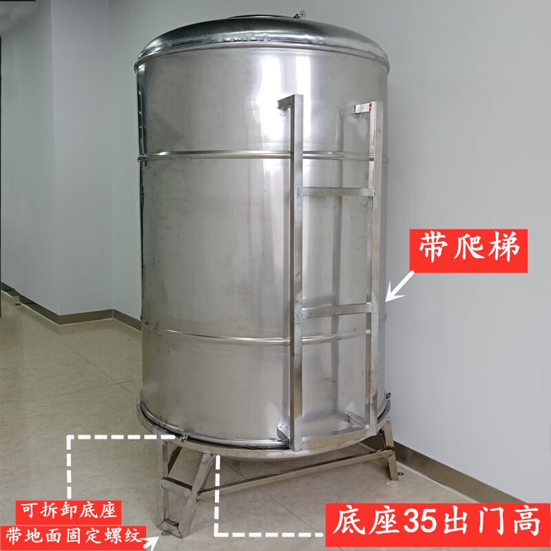 村舍 304不锈钢水箱加厚楼顶带爬梯水塔储水罐水桶家用蓄水储油酒罐 2吨立式304手工特厚水箱