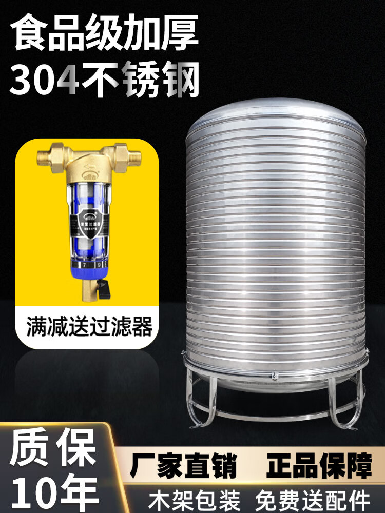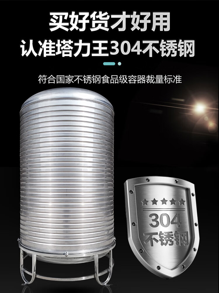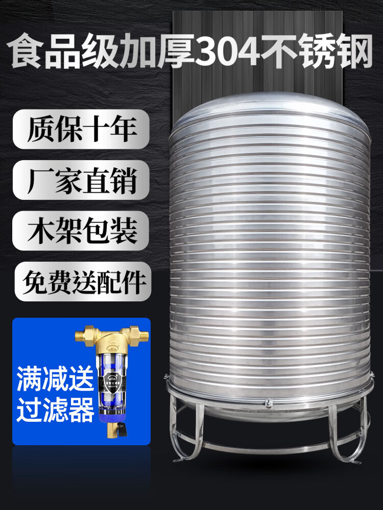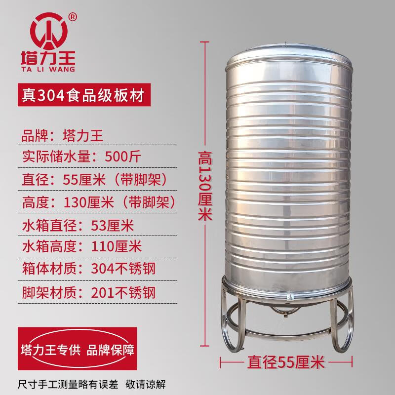 旭杉斯304不锈钢水箱储水桶水塔家用立式加厚太阳能楼顶厨房蓄水罐酒罐 特厚0.3吨55*130CM带脚架