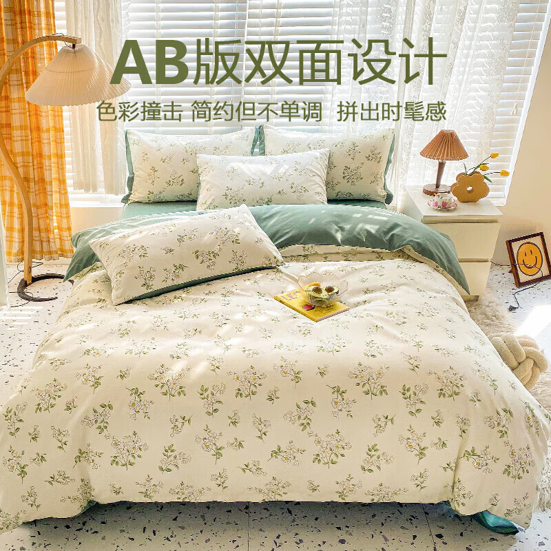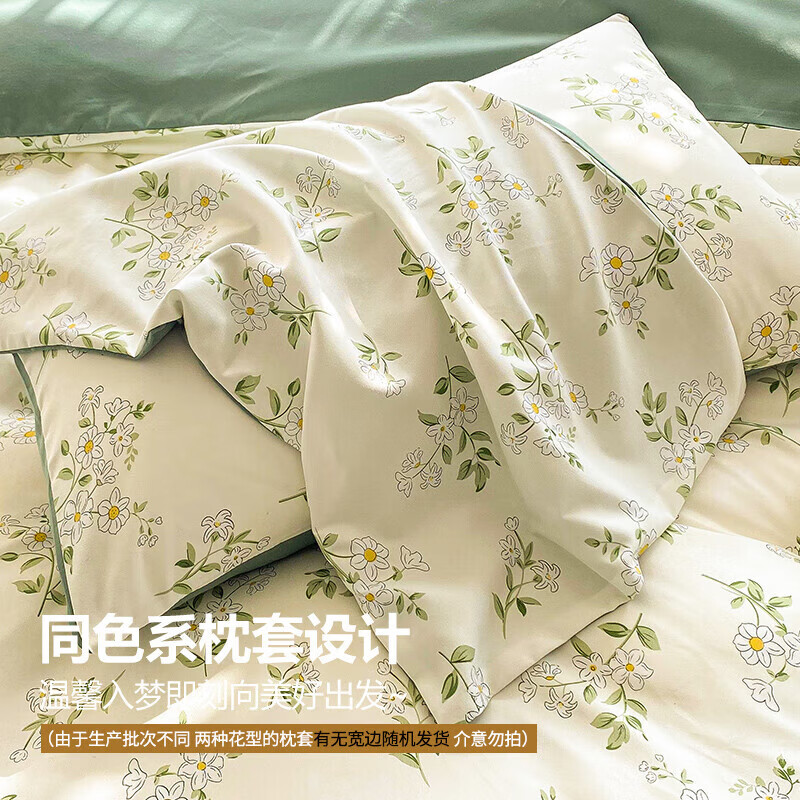 九洲鹿水洗磨毛四件套 适用1.5/1.8米床套件 被套200x230cm小碎花