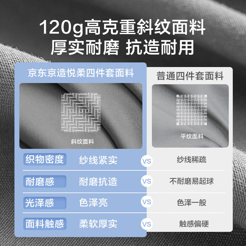 京东京造悦柔四件套 120g加厚耐用磨毛A类床单被套床上四件套 1.8米科技灰