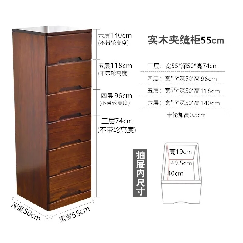依面实木夹缝收纳柜抽屉式木制窄斗柜卧室床头柜客厅储物边角柜缝隙柜 咖啡色-55宽-50深-经典款 5层