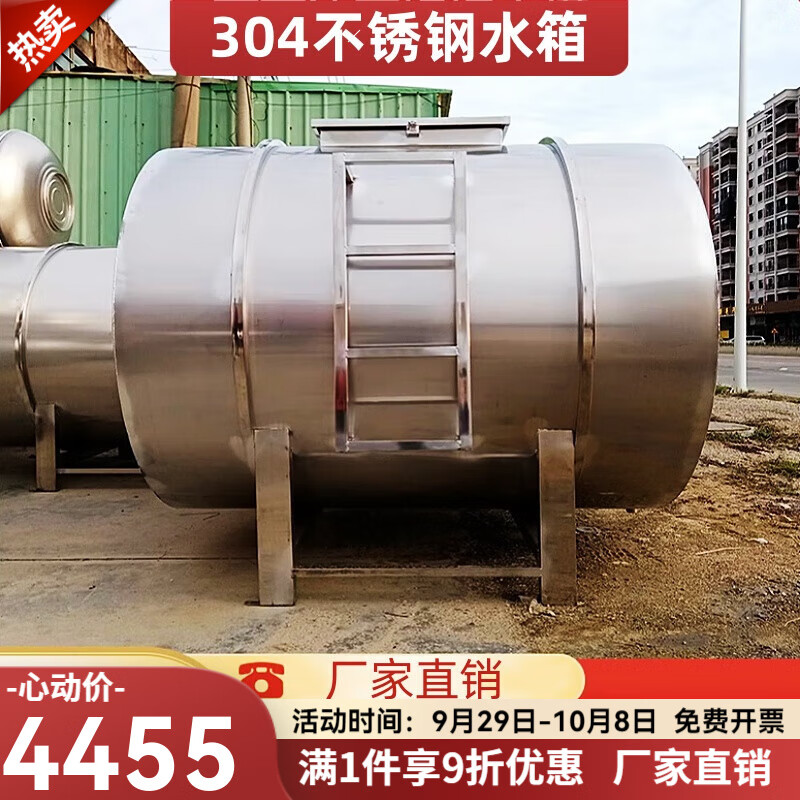 什嘉航加厚304不锈钢水箱加厚水塔储水罐大容量卧式家用蓄水桶 5吨卧式 (家用常规款)