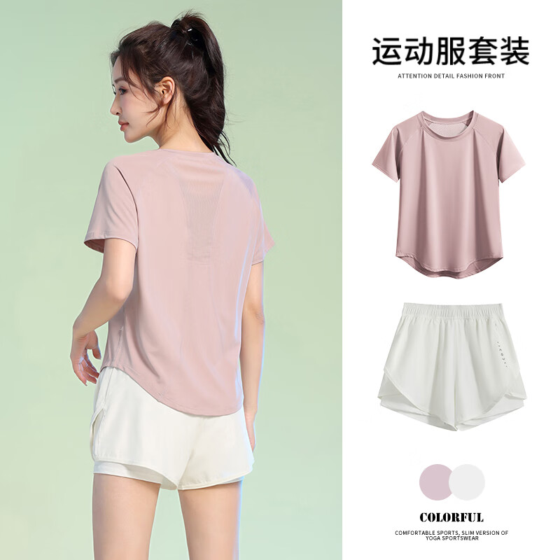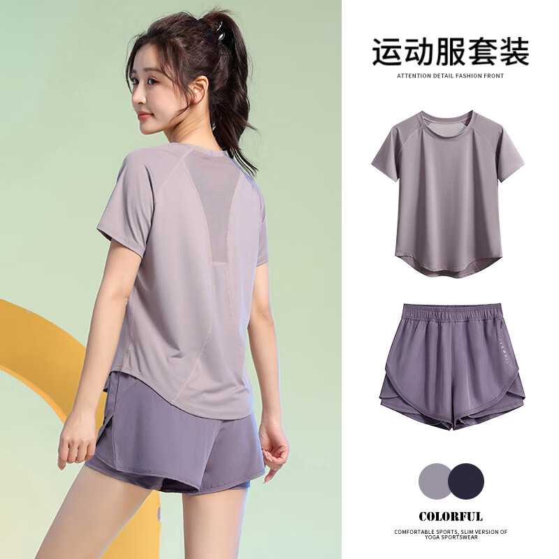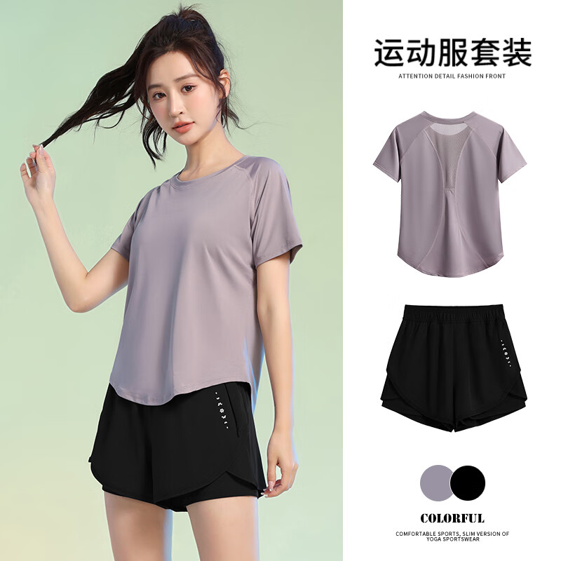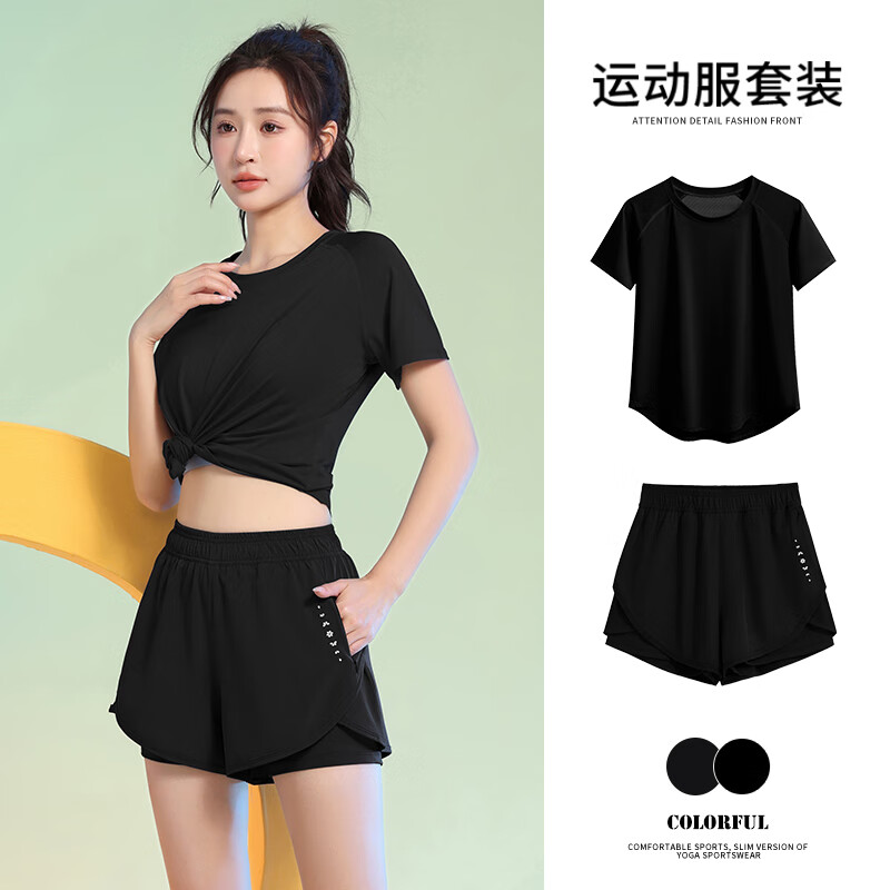 百思绒四季速干衣户外运动套装女晨跑步服宽松 黑色上衣+黑短裤 XL