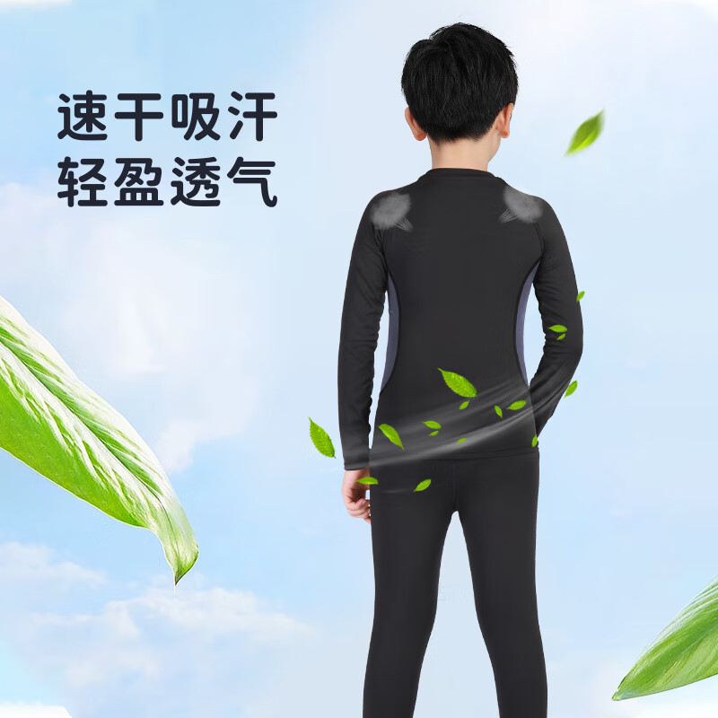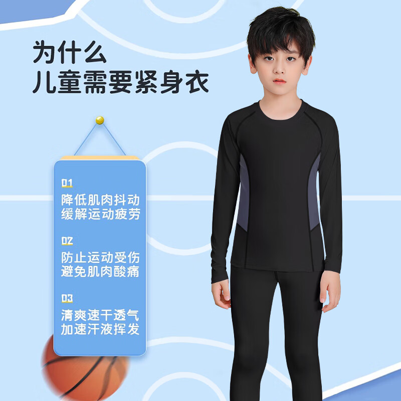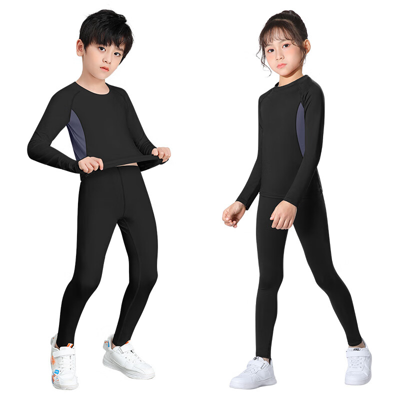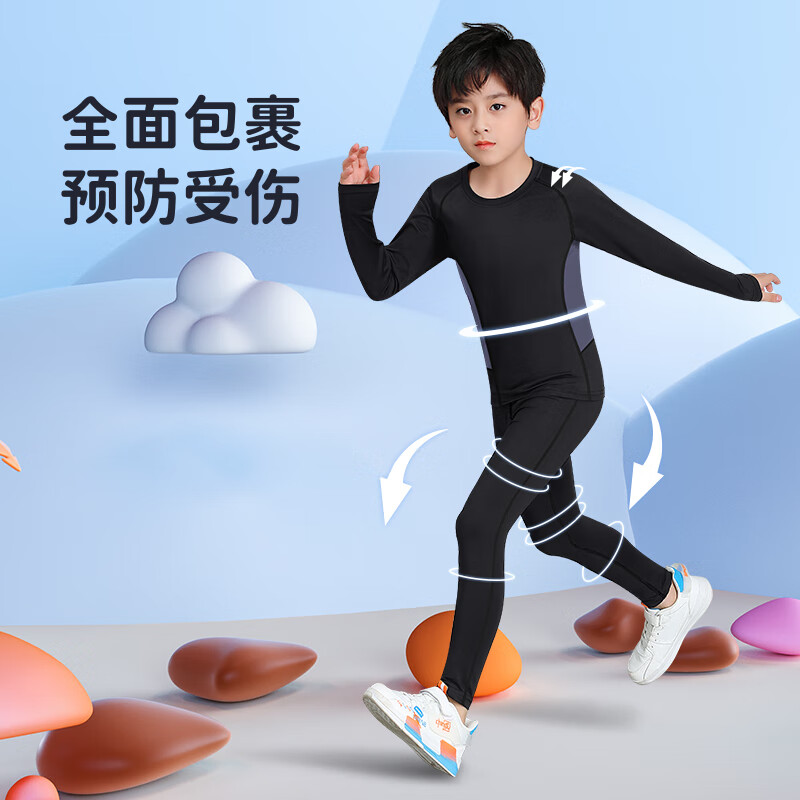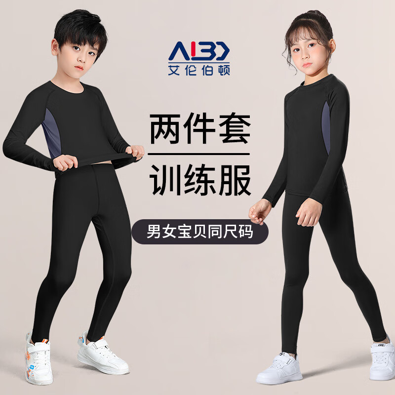 艾伦伯顿儿童紧身衣训练服运动套装篮球服速干衣秋冬内搭打底长袖足球衣服 两件套黑色【高弹 速干 透气】 M(推荐140-150cm 65-75斤)