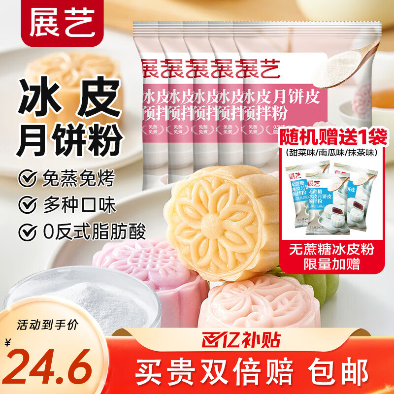 展艺冰皮月饼预拌粉月饼材料全套冰皮专用粉免蒸烤商用团建烘焙中秋 【原味家庭】原味冰皮粉200g*5