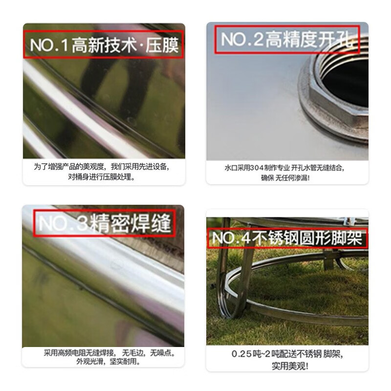 村舍 304食品级不锈钢水箱 家用蓄水桶储水罐圆形太阳能空气能水塔需 0.5吨立(660*1650mm)装水960斤