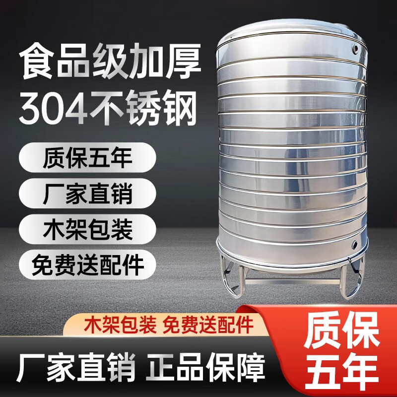 鑫仕德304不锈钢水塔储水桶家用太阳能楼顶储水罐户外蓄水桶加厚水箱 加厚0.2吨(直径60*90CM)带脚架