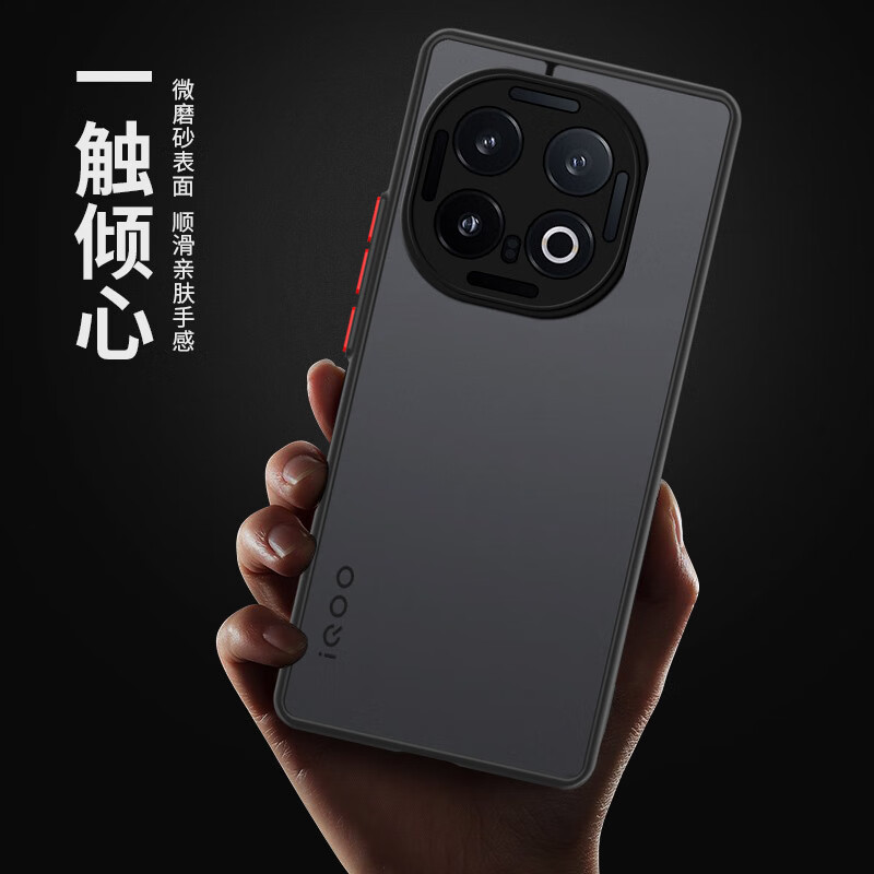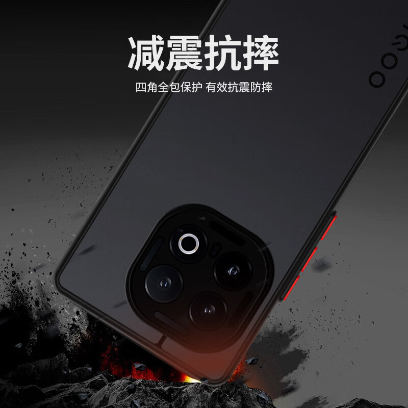 暴走适用iqoo13手机壳 vivo iqoo13保护套 镜头全包防摔硅胶直边撞色透明磨砂抗指纹硬壳 黑