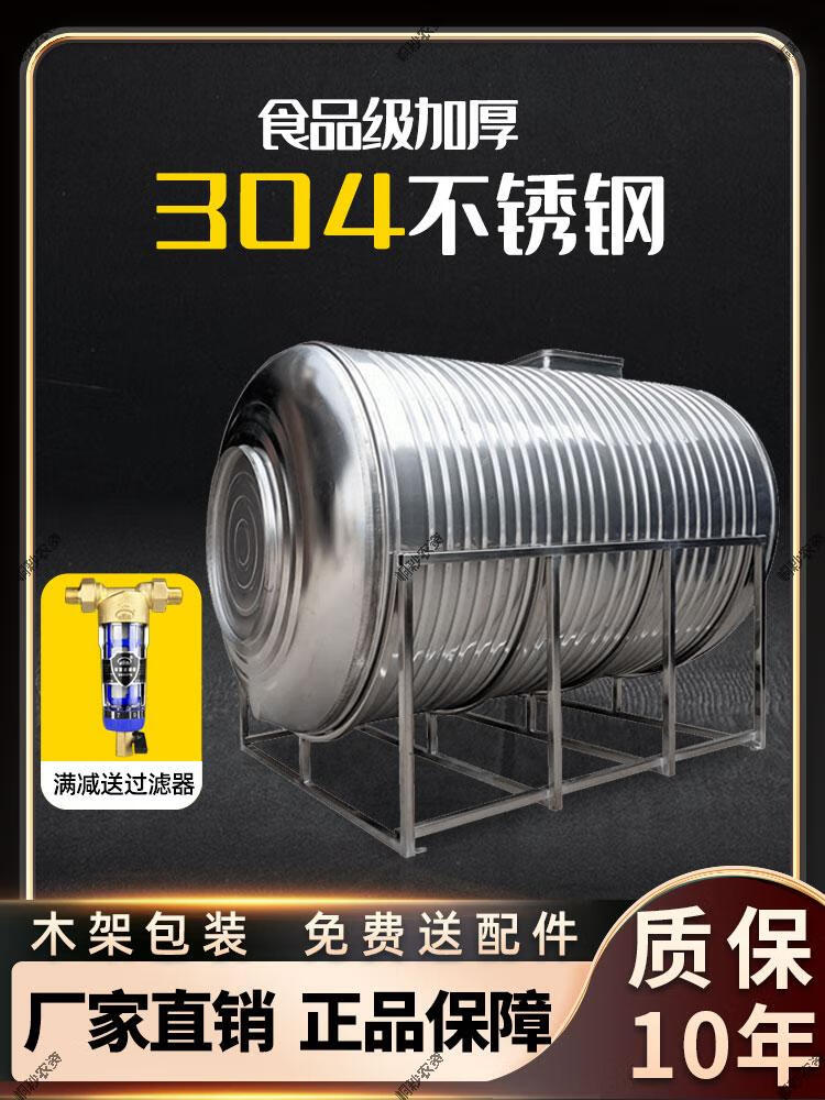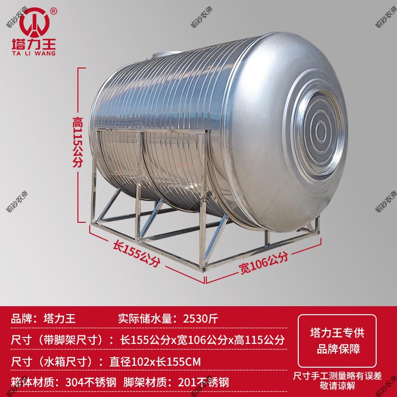 旭杉斯304不锈钢水箱卧式储水罐水塔家用平放加厚太阳能楼顶厨房蓄水桶 加厚1.5吨