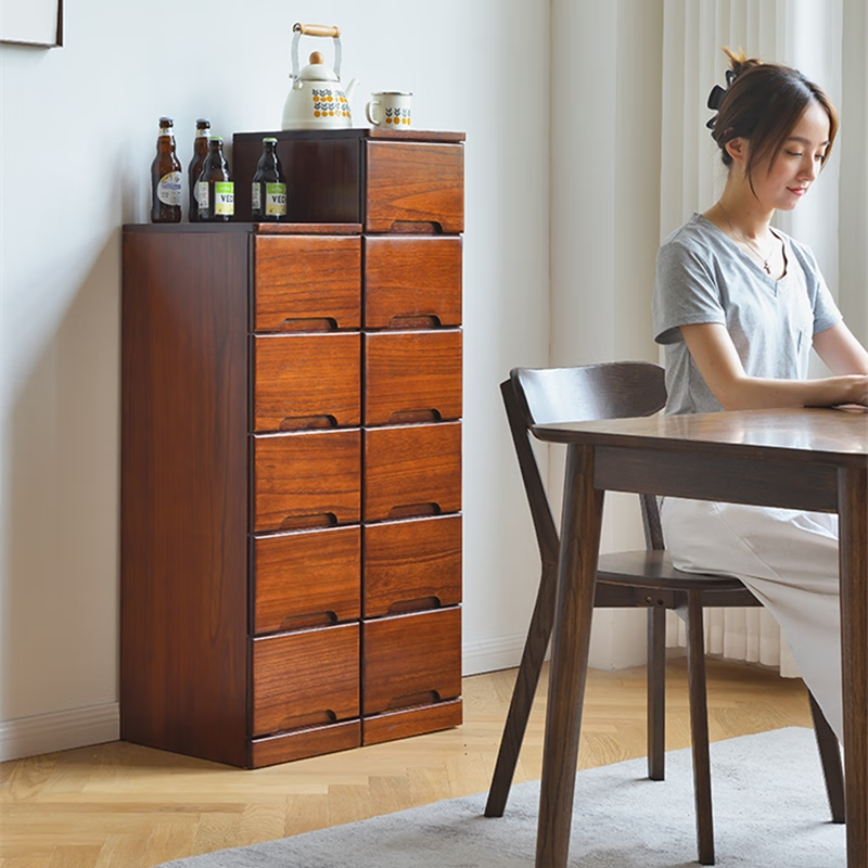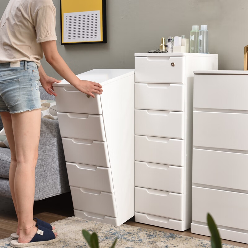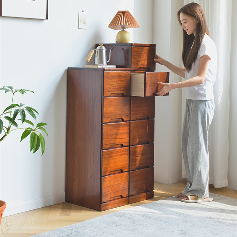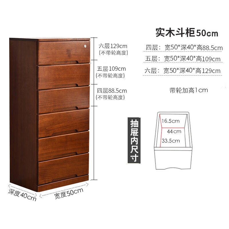 依面实木夹缝收纳柜抽屉式木制窄斗柜卧室床头柜客厅储物边角柜缝隙柜 咖啡色 50宽 40深 顶抽带锁 5层