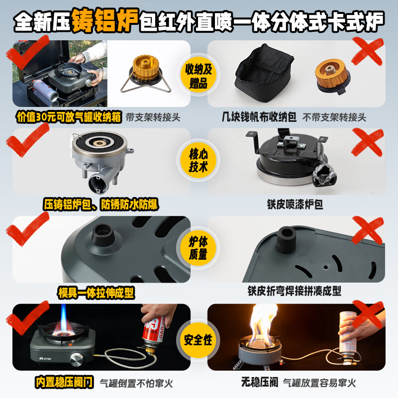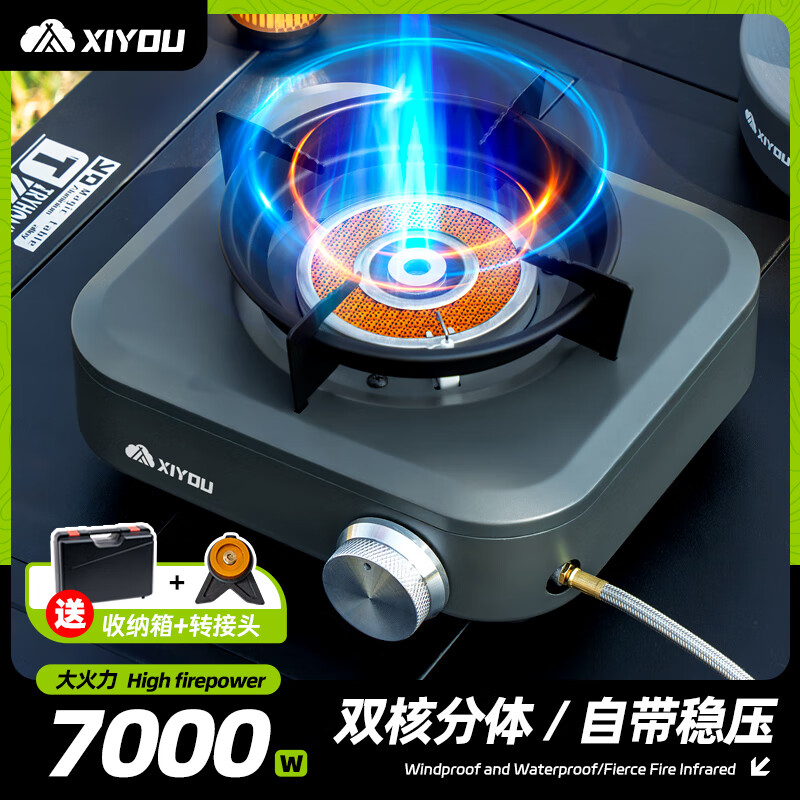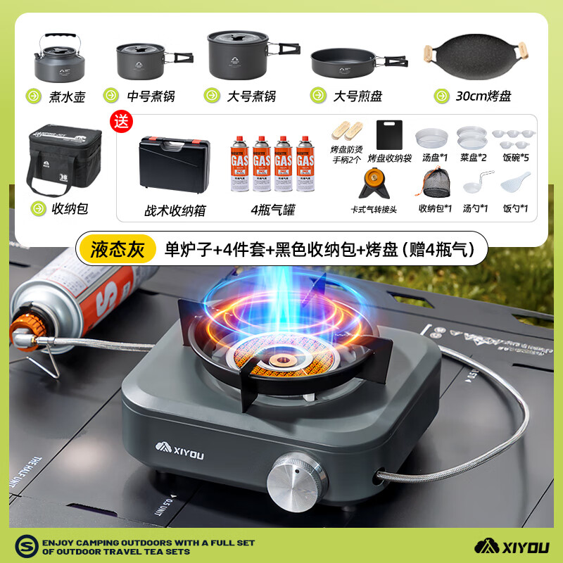 嘻由防爆分体式卡式炉户外便携式新款煮茶露营野炊家用卡磁炉全套炊具 【野炊全套 】炉子+新4件套+30烤盘+包+赠品 【液态灰】升级收纳箱+转接头