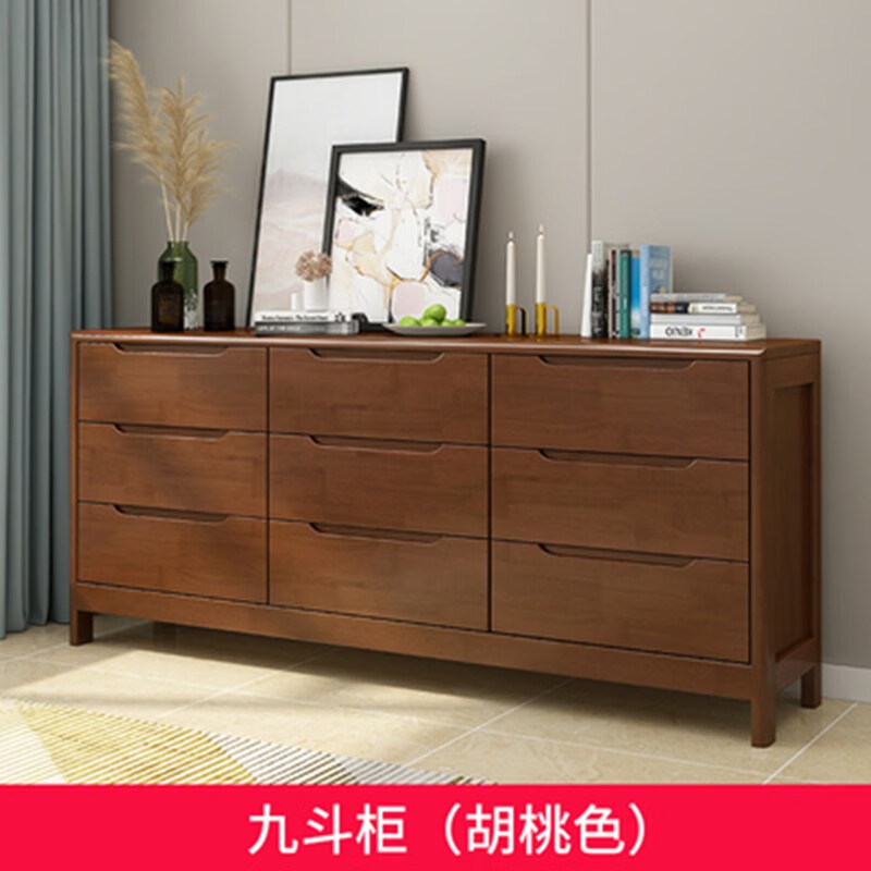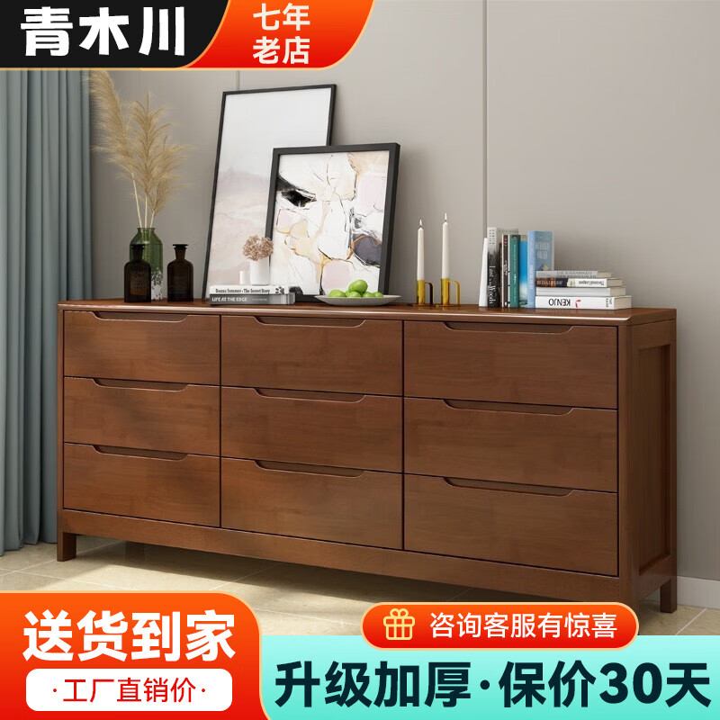 青木川实木五斗柜床尾柜储物柜客厅主卧室抽屉式收纳柜玄关柜夹缝小户型 九斗柜【150x40x75cm】胡桃色