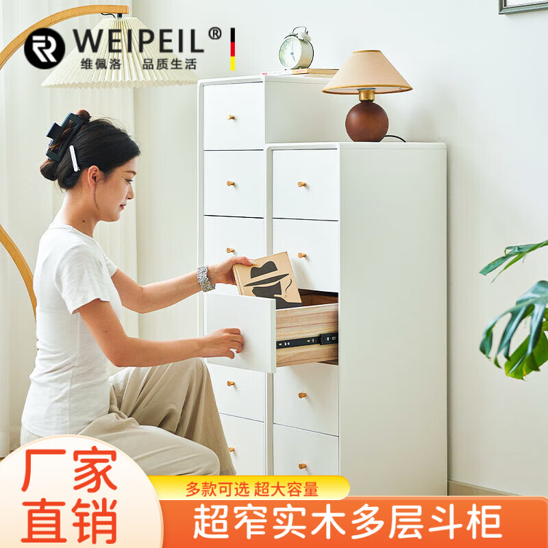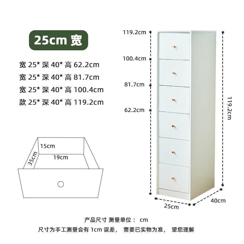 维佩洛实木抽屉柜实木斗柜多层抽屉式夹缝抽屉式收纳柜客厅缝隙极窄床头 25cm宽 白色【进口橡胶木】 3层