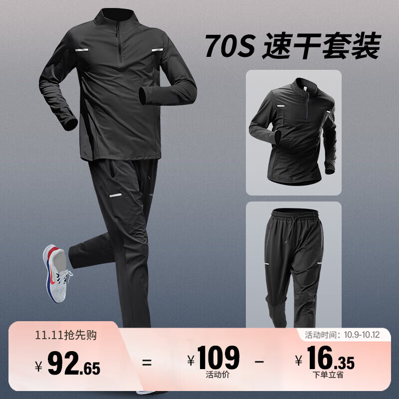 艾伦伯顿运动套装男士跑步训练健身服衣服田径速干衣秋季户外晨跑新款装备 黑色两件套【透气 速干 运动】 3XL 【180-200斤】