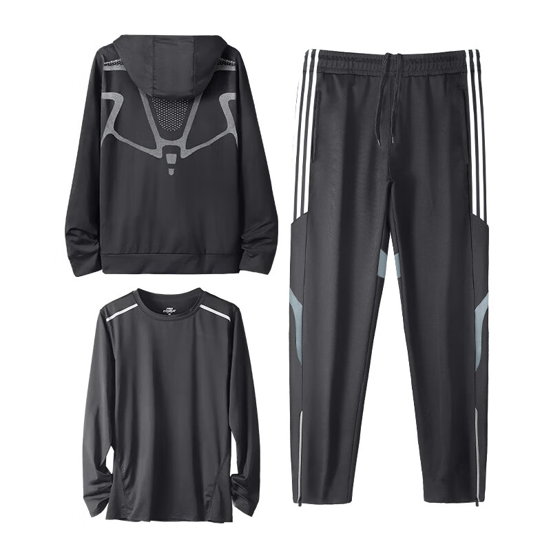 艾伦伯顿(Alen Botun)运动套装男秋季外套晨跑服宽松速干衣田径跑步训练服篮球健身服饰 黑色【速干 透气】三件套 XL