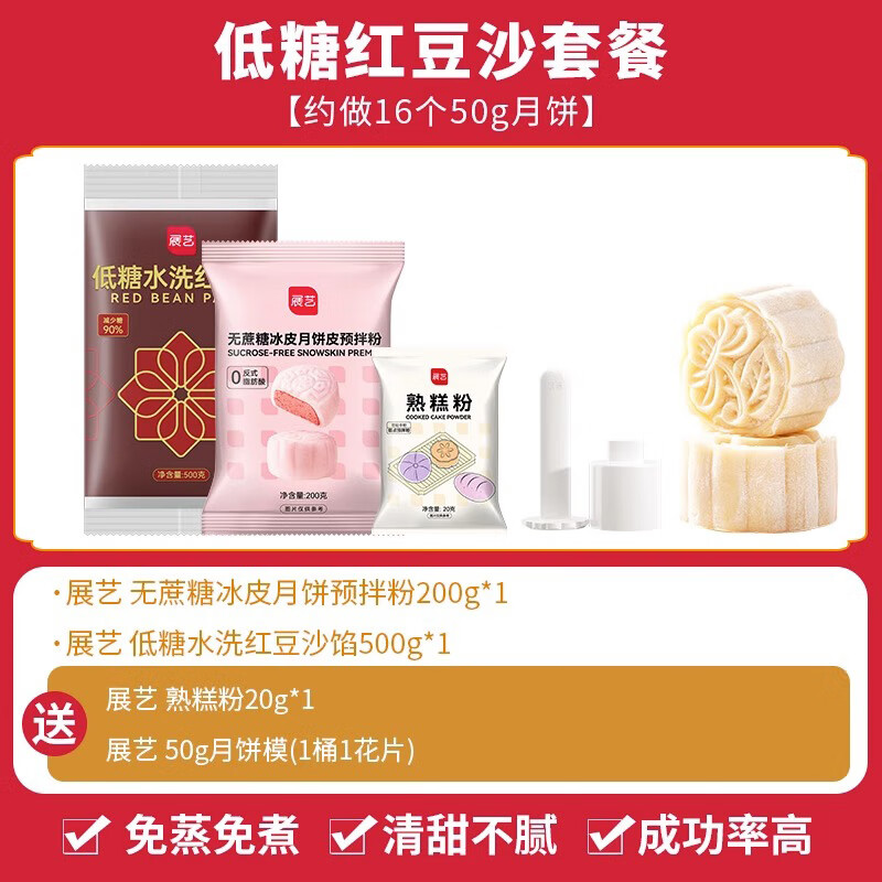 展艺冰皮月饼预拌粉月饼材料全套冰皮专用粉免蒸烤商用团建烘焙中秋 [低糖红豆沙]约做16个-送赠品