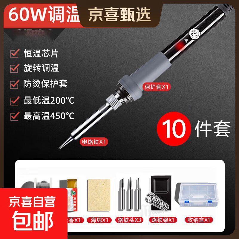 德力西同厂 电烙铁套装家用恒温可调温电焊笔焊锡枪维修焊接工具 60W内热【机械调温】10件套