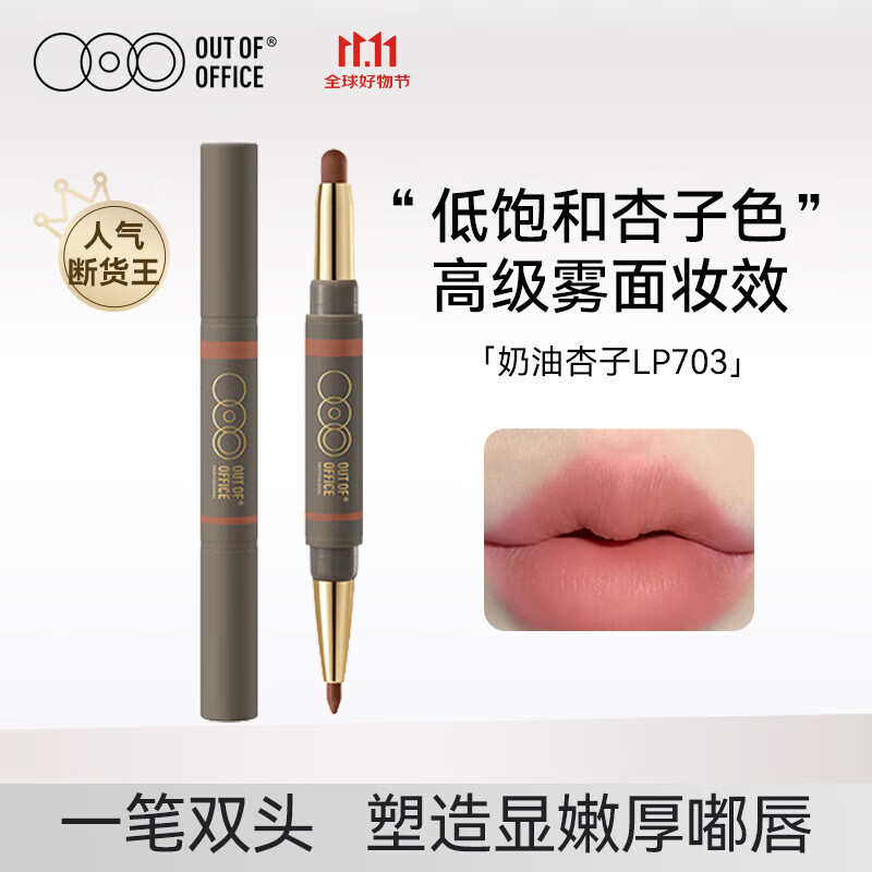 OUT-OF-OFFICE双头唇线笔雾嘟笔OOO唇膏笔防水丰唇不脱色口红笔LP703