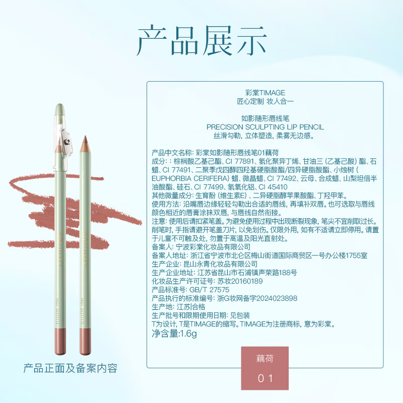 彩棠(TIMAGE)如影随形唇线笔01藕荷1.6g柔滑勾勒唇形口红唇膏生日礼物送女友