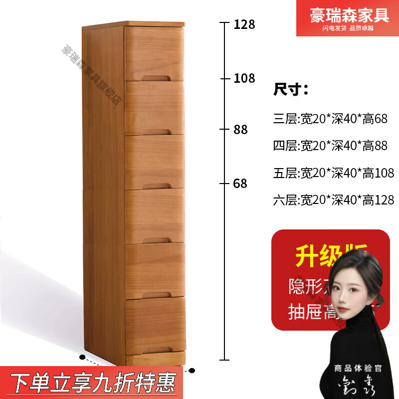 豪瑞森实木夹缝收纳柜窄立柜卫生间侧边超窄边角五斗柜缝隙储物柜抽屉式 20宽:原木色 3个