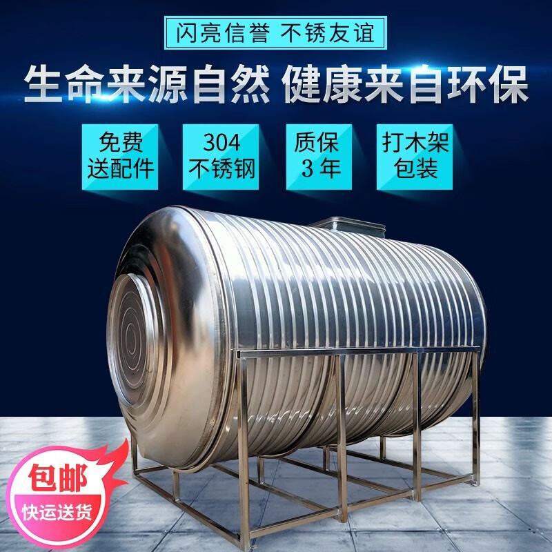 短云304不锈钢水箱卧式储水罐水塔家用平放加厚太阳能楼顶厨房蓄水桶 0.5吨卧式(特厚)304不锈钢